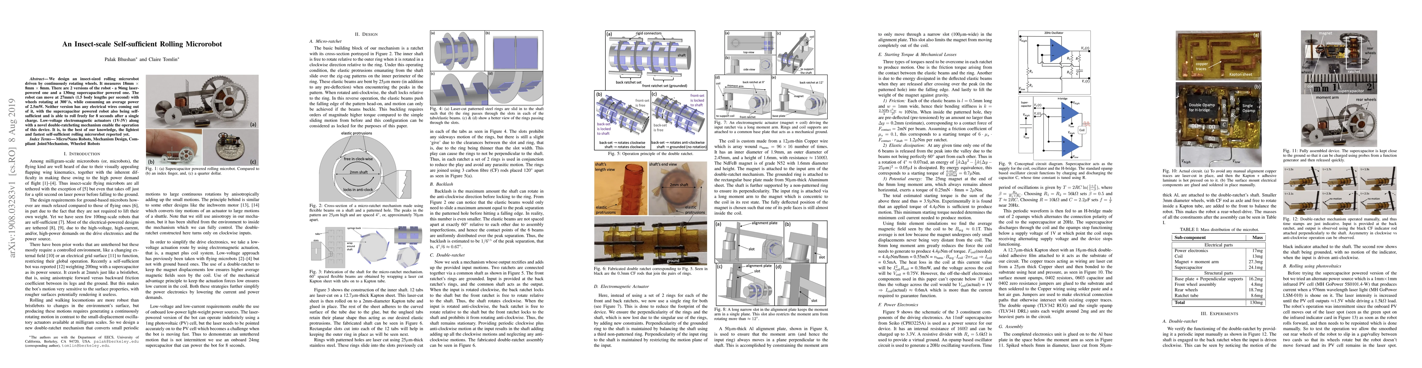 Researchers have created an insect-scale microrobot that can roll at 27mm/s without wires, powered by a laser or supercapacitor, making it the lightest and fastest self-sufficient rolling microrobot yet.