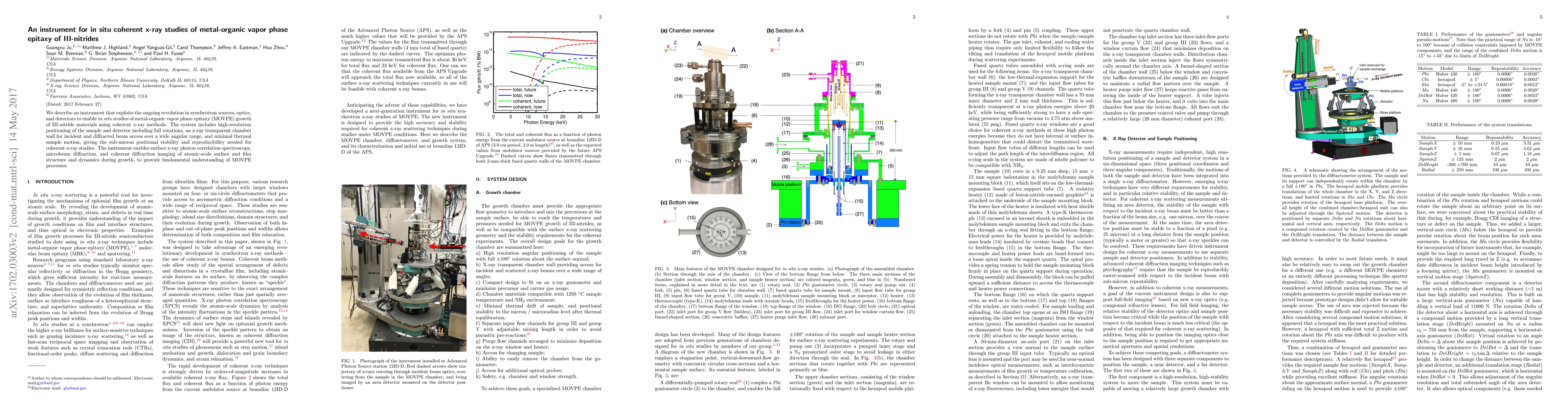 This paper introduces an advanced instrument leveraging synchrotron technology for in situ x-ray studies of III-nitride materials grown via metal-organic vapor phase epitaxy. The system offers high-resolution sample positioning, x-ray transparency, and sub-micron stability, enabling detailed studies of atomic-scale surface dynamics during growth.