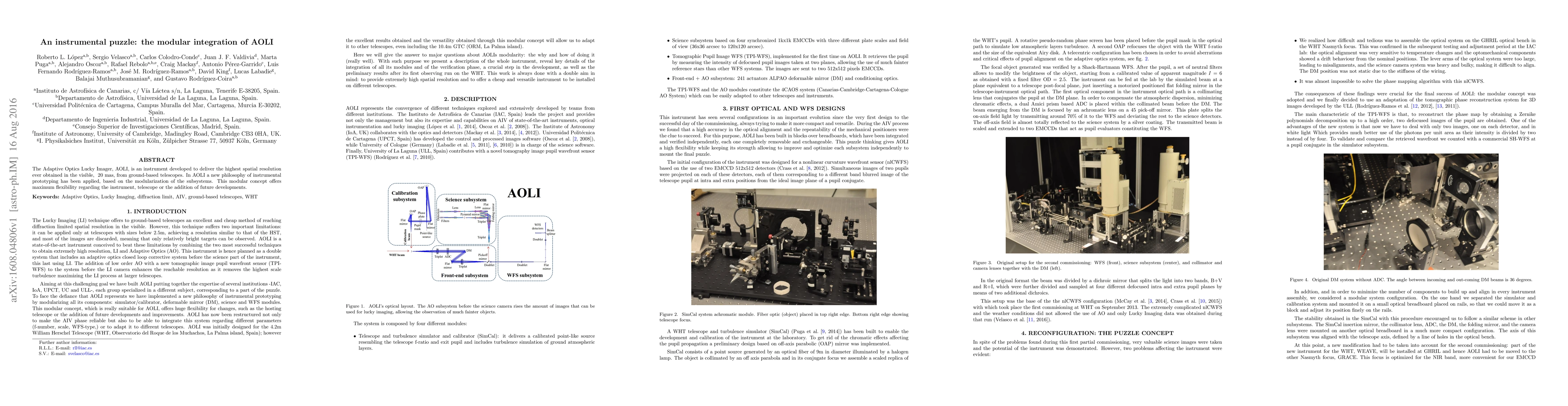 The Adaptive Optics Lucky Imager, AOLI, is an instrument developed to deliver the highest spatial resolution ever obtained in the visible, 20 mas, from ground-based telescopes. In AOLI a new philosophy of instrumental prototyping has been applied, based on the modularization of the subsystems. This modular concept offers maximum flexibility regarding the instrument, telescope or the addition of future developments.