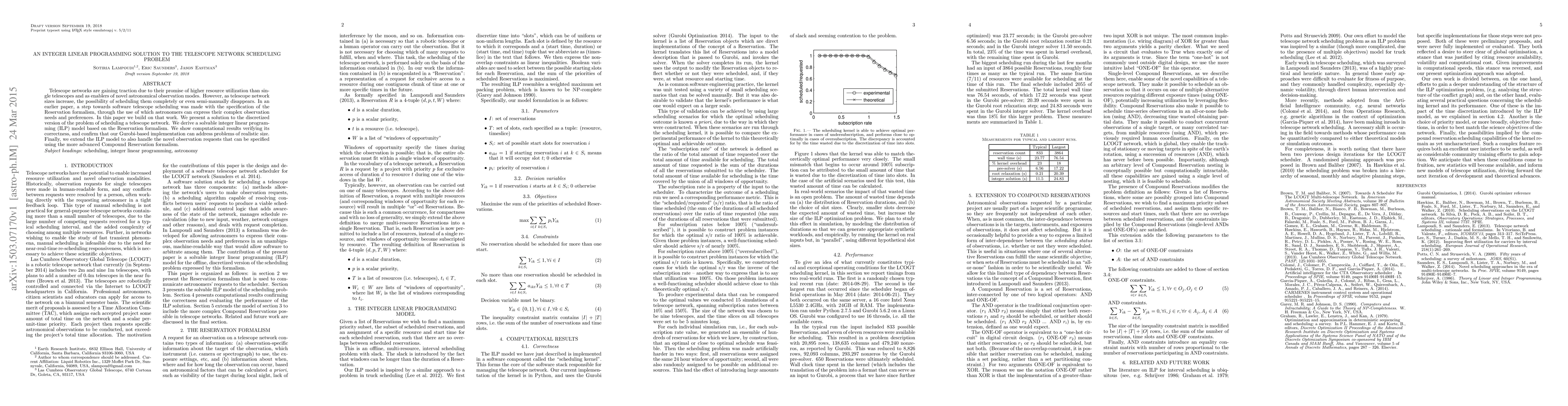 Telescope networks are gaining traction due to their promise of higher resource utilization than single telescopes and as enablers of novel astronomical observation modes. However, as telescope network sizes increase, the possibility of scheduling them completely or even semi-manually disappears. In an earlier paper, a step towards software telescope scheduling was made with the specification of the Reservation formalism, through the use of which astronomers can express their complex observation needs and preferences. In this paper we build on that work. We present a solution to the discretized version of the problem of scheduling a telescope network. We derive a solvable integer linear programming (ILP) model based on the Reservation formalism. We show computational results verifying its correctness, and confirm that our Gurobi-based implementation can address problems of realistic size. Finally, we extend the ILP model to also handle the novel observation requests that can be specified using the more advanced Compound Reservation formalism.