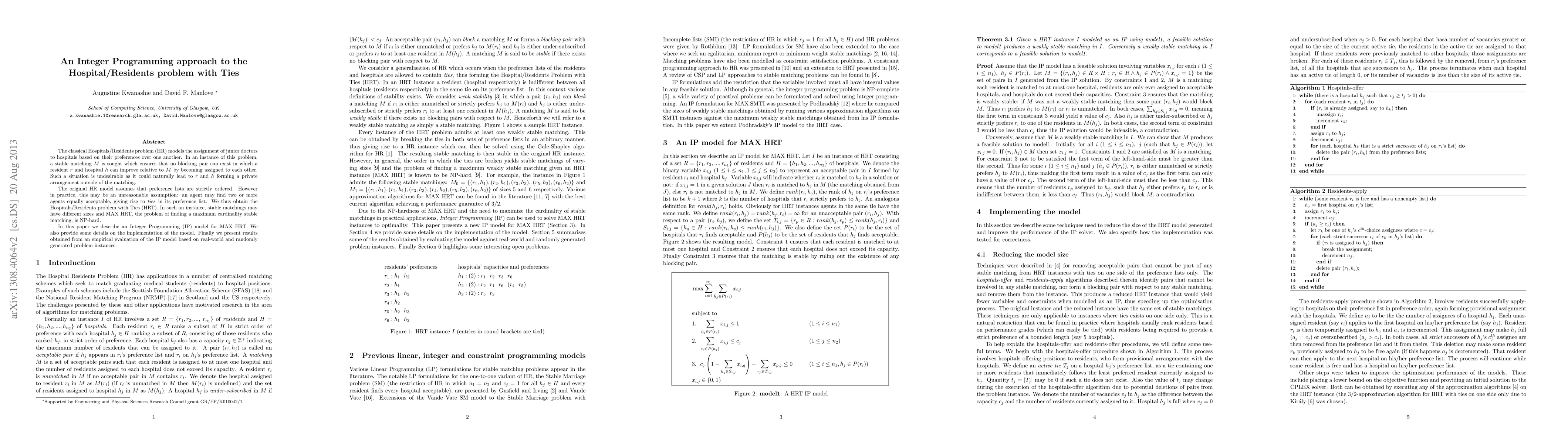A novel Integer Programming model is presented to solve the Hospitals/Residents problem with Ties (HRT), a variant of the classic HR problem where residents' preference lists may contain ties, leading to NP-hard MAX HRT.