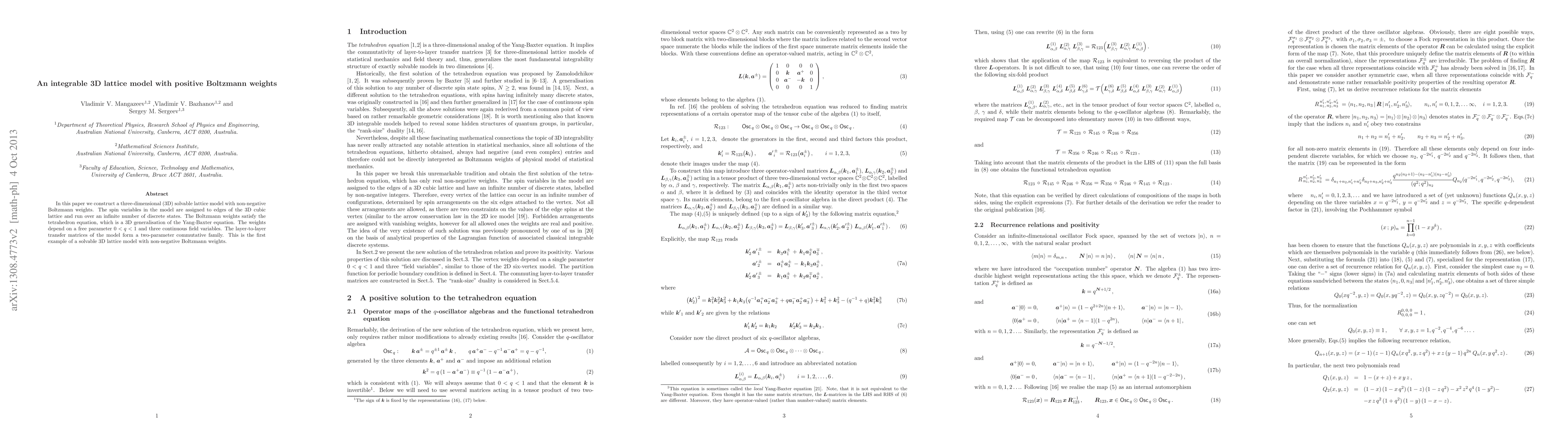 discrete states. The Boltzmann weights satisfy the tetrahedron equation, which