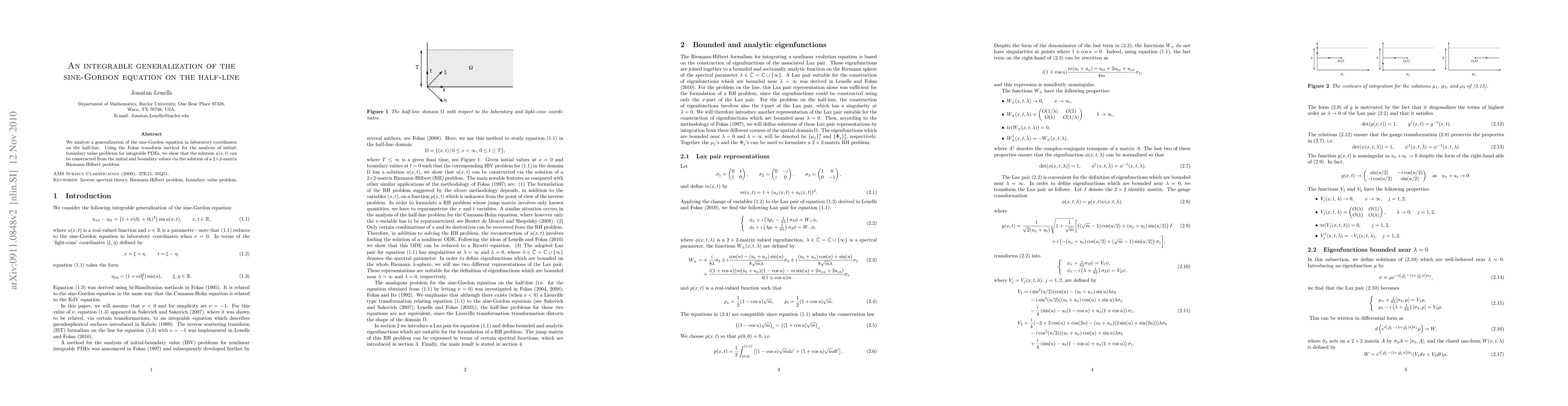 This paper generalizes the sine-Gordon equation on the half-line and utilizes the Fokas transform method to solve it. The solution $u(x,t)$ is derived from initial and boundary conditions through a $2\times 2$-matrix Riemann-Hilbert problem.