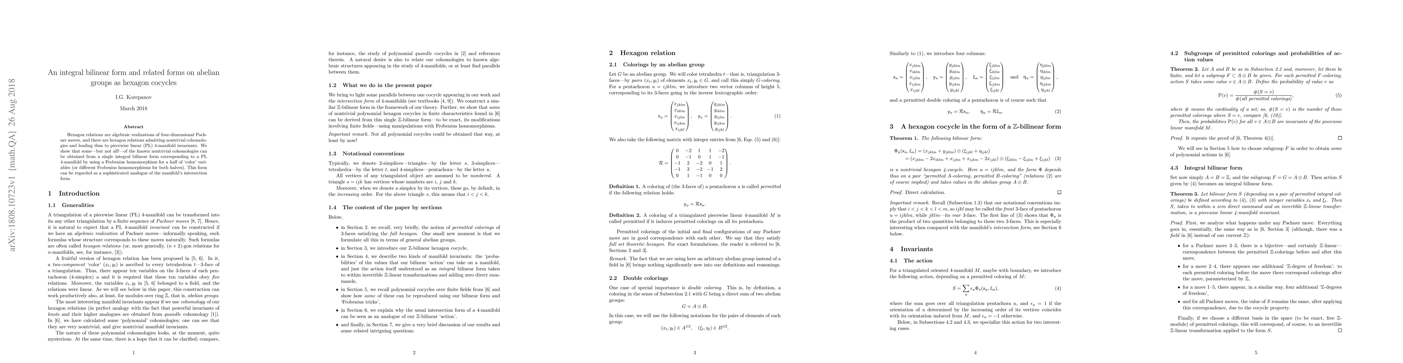 Hexagon relations are algebraic realizations of four-dimensional Pachner moves, and there are hexagon relations admitting nontrivial cohomologies and leading thus to piecewise linear (PL) 4-manifold invariants. We show that some - but not all! - of the known nontrivial cohomologies can be obtained from a single integral bilinear form corresponding to a PL 4-manifold by using a Frobenius homomorphism for a half of `color' variables (or different Frobenius homomorphisms for both halves). This form can be regarded as a sophisticated analogue of the manifold's intersection form.
