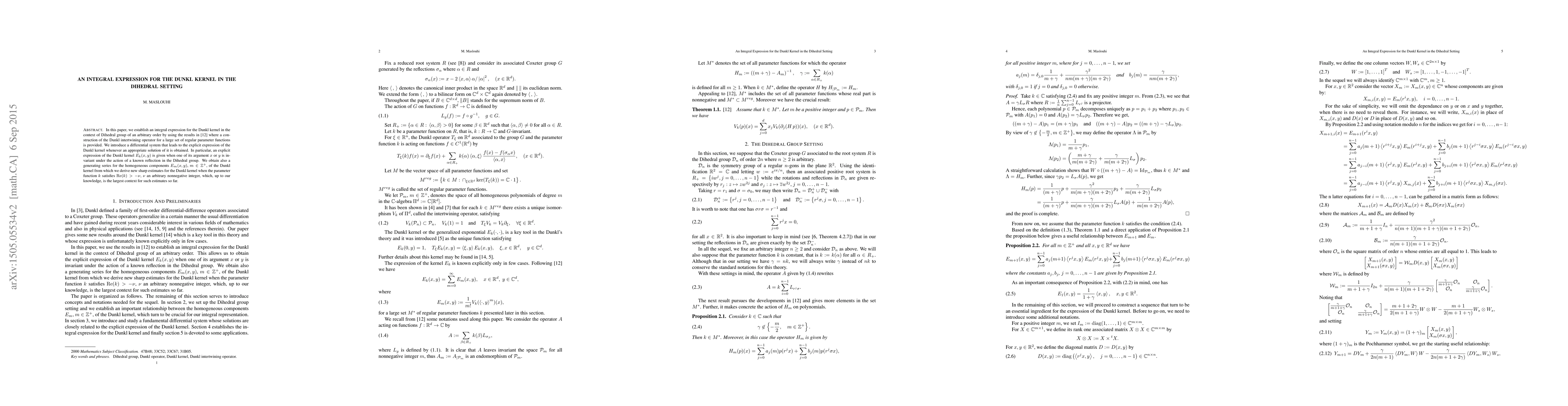 This paper derives an integral expression for the Dunkl kernel in the dihedral group setting using differential equations and results from \cite{M-Y-Vk}. It provides an explicit form for the Dunkl kernel when one argument is invariant under a reflection and new sharp estimates for homogeneous components under certain conditions.