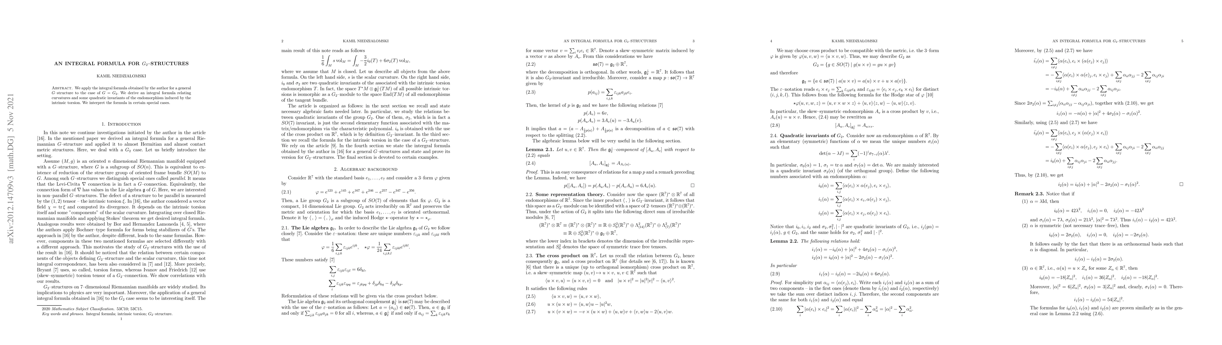 Researchers develop an integral formula to relate curvatures and invariants of $G_2$-structures, providing new insights into their properties.