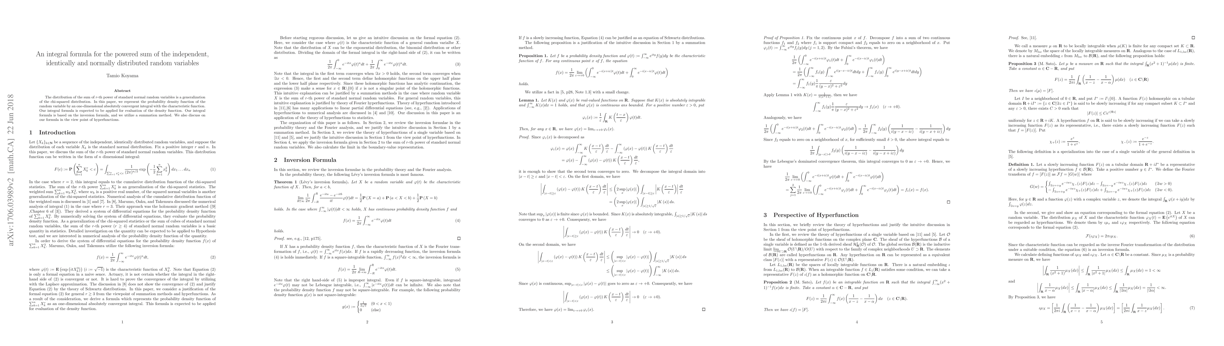 Researchers develop an integral formula to calculate the probability density function of the sum of r-th power of standard normal random variables, generalizing the chi-squared distribution.