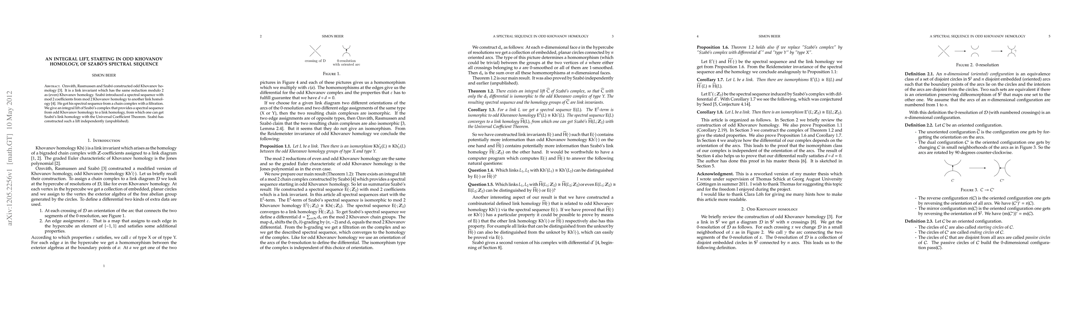 This paper presents an integral lift of Szab\'o's spectral sequence, originally constructed from mod 2 Khovanov homology, using odd Khovanov homology. This provides a new spectral sequence that connects odd Khovanov homology to another link homology, allowing for the recovery of Szab\'o's link homology via the Universal Coefficient Theorem.