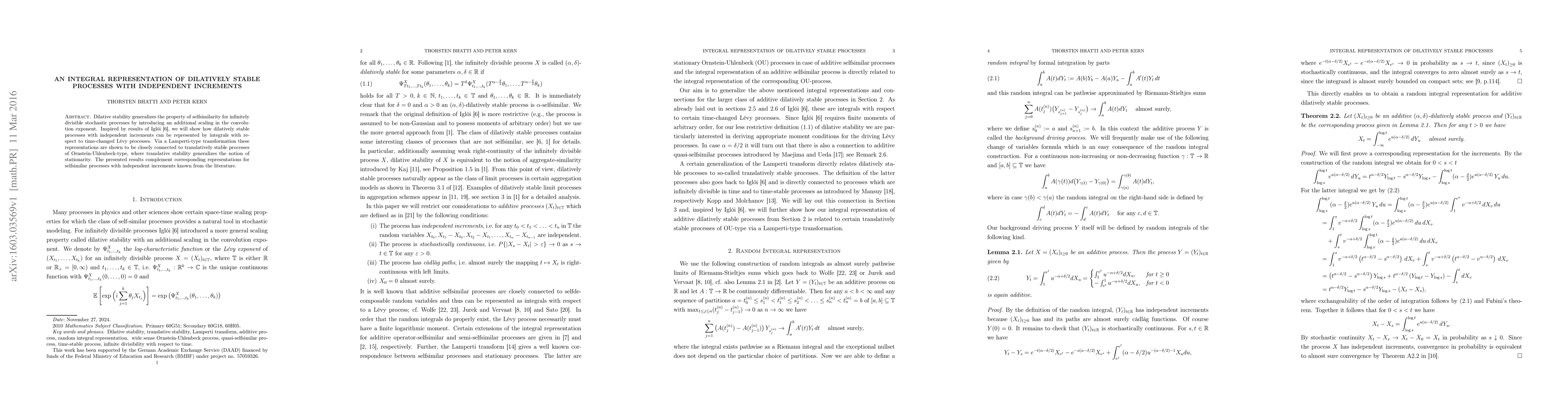 This paper presents an integral representation for dilatively stable processes with independent increments, showing their connection to time-changed Lévy processes. It also links these processes to translatively stable processes of Ornstein-Uhlenbeck-type, extending the known representations for selfsimilar processes.
