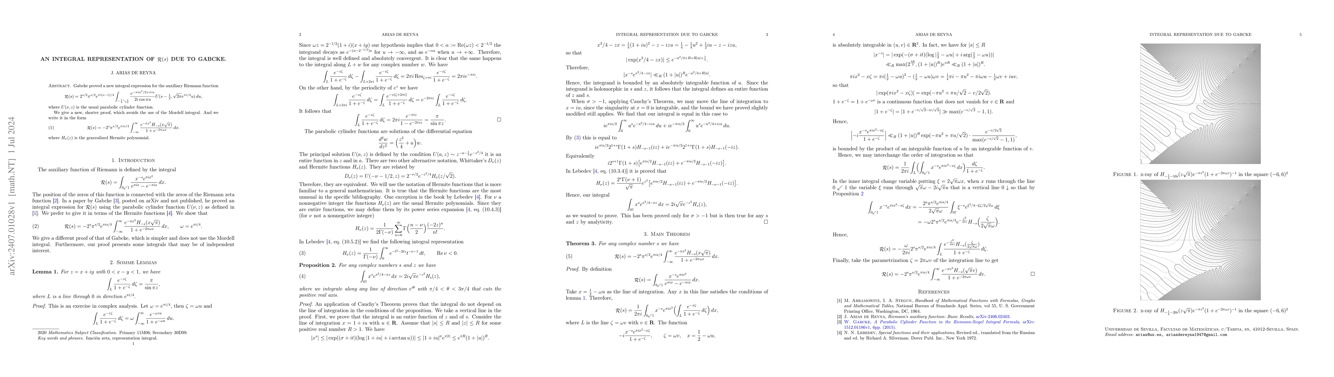 Gabcke proved a new integral expression for the auxiliary Riemann function \[\mathop{\mathcal R}(s)=2^{s/2}\pi^{s/2}e^{\pi i(s-1)/4}\int_{-\frac12\searrow\frac12} \frac{e^{-\pi i u^2/2+\pi i u}}{2i\cos\pi u}U(s-\tfrac12,\sqrt{2\pi}e^{\pi i/4}u)\,du,\] where $U(\nu,z)$ is the usual parabolic cylinder function. We give a new, shorter proof, which avoids the use of the Mordell integral. And we write it in the form \begin{equation}\mathop{\mathcal R}(s)=-2^s \pi^{s/2}e^{\pi i s/4}\int_{-\infty}^\infty \frac{e^{-\pi x^2}H_{-s}(x\sqrt{\pi})}{1+e^{-2\pi\omega x}}\,dx.\end{equation} where $H_\nu(z)$ is the generalized Hermite polynomial.