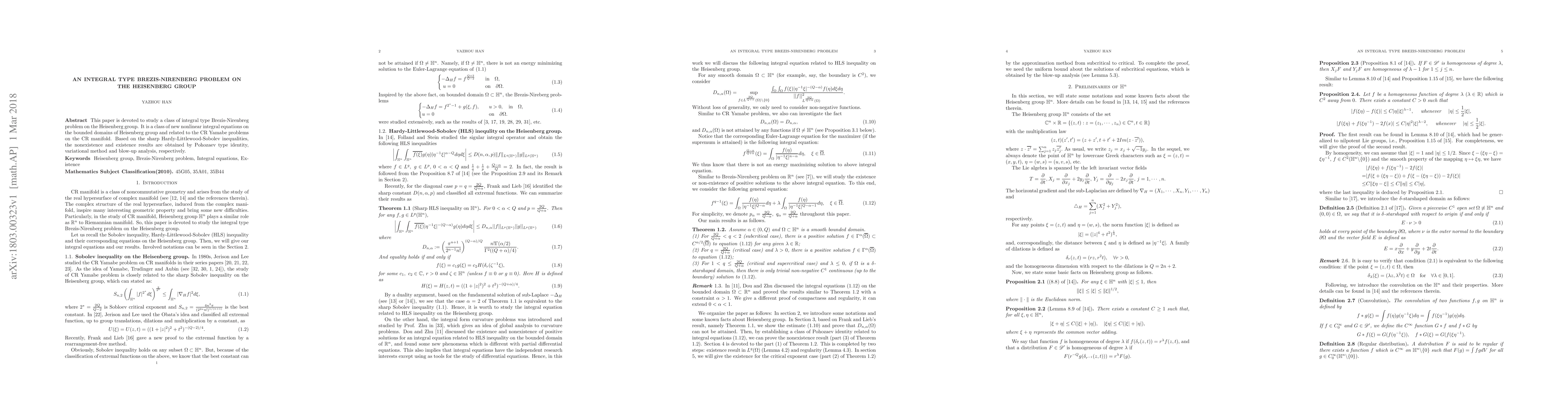 This paper investigates a novel class of nonlinear integral equations on the Heisenberg group, linked to CR Yamabe problems, using sharp Hardy-Littlewood-Sobolev inequalities, Pohozaev identities, variational methods, and blow-up analysis to establish nonexistence and existence results.