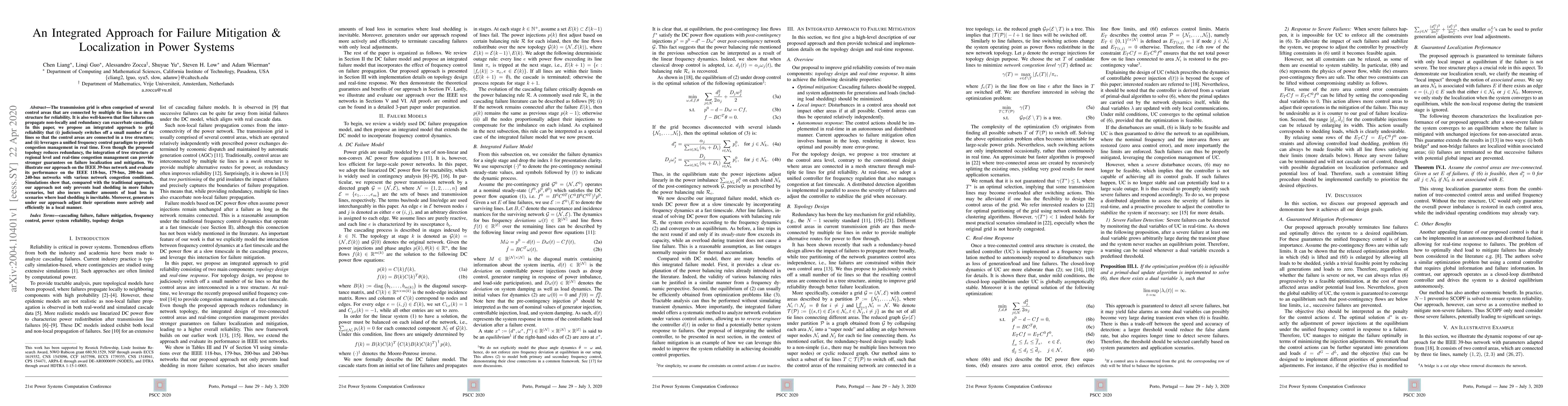 This paper proposes an integrated method for enhancing power grid reliability by switching off select tie lines to create a tree structure, thereby reducing cascading failures, and employing real-time frequency control to manage congestion. Simulation results show improved failure localization and mitigation compared to traditional methods, with less load shedding and more efficient local generator adjustments.