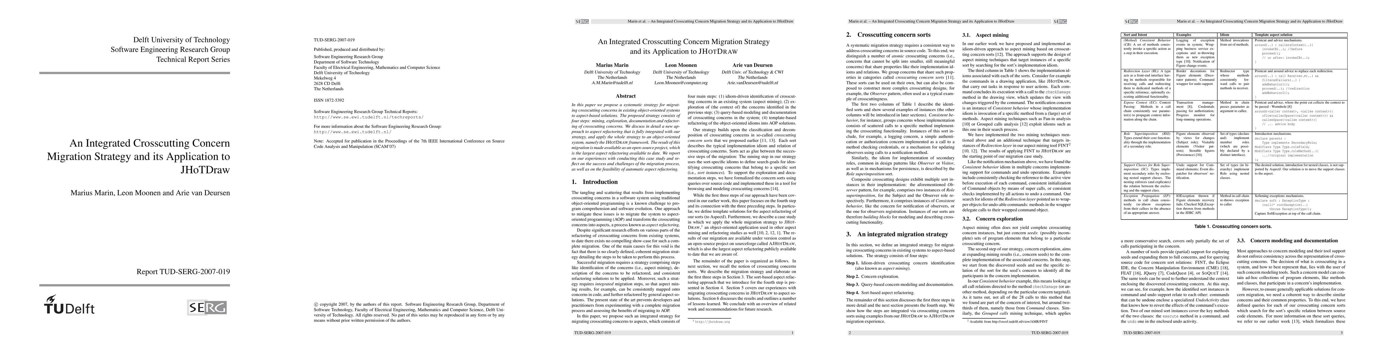 In this paper we propose a systematic strategy for migrating crosscutting concerns in existing object-oriented systems to aspect-based solutions. The proposed strategy consists of four steps: mining, exploration, documentation and refactoring of crosscutting concerns. We discuss in detail a new approach to aspect refactoring that is fully integrated with our strategy, and apply the whole strategy to an object-oriented system, namely the JHotDraw framework. The result of this migration is made available as an open-source project, which is the largest aspect refactoring available to date. We report on our experiences with conducting this case study and reflect on the success and challenges of the migration process, as well as on the feasibility of automatic aspect refactoring.