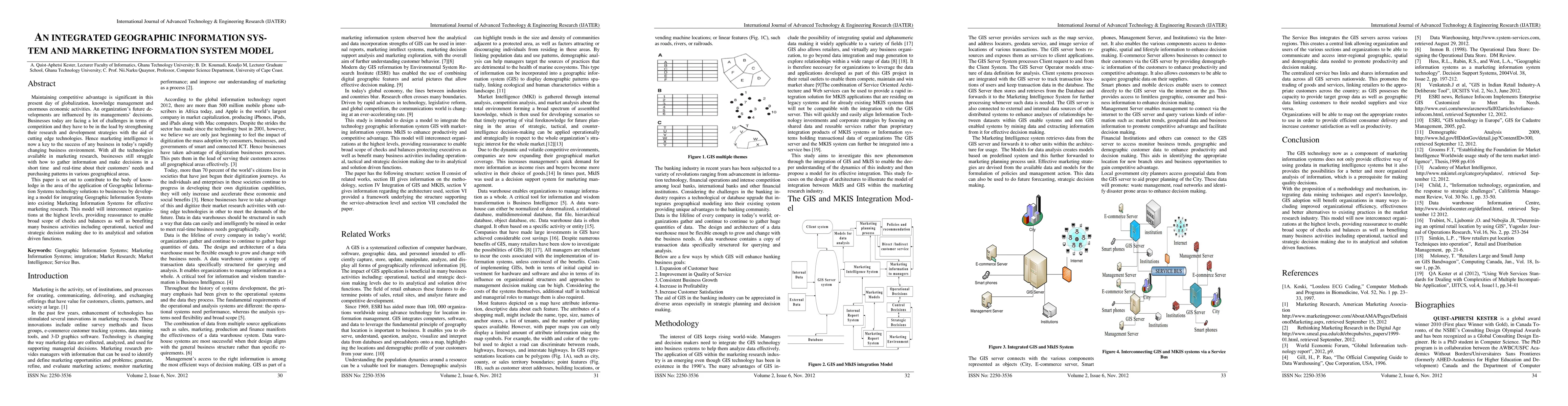 This paper proposes an integrated model for combining Geographic Information Systems with Marketing Information Systems to enhance marketing research and decision-making in a rapidly changing business environment. The model aims to provide organizations with real-time insights into customer needs and purchasing patterns across different geographical areas.