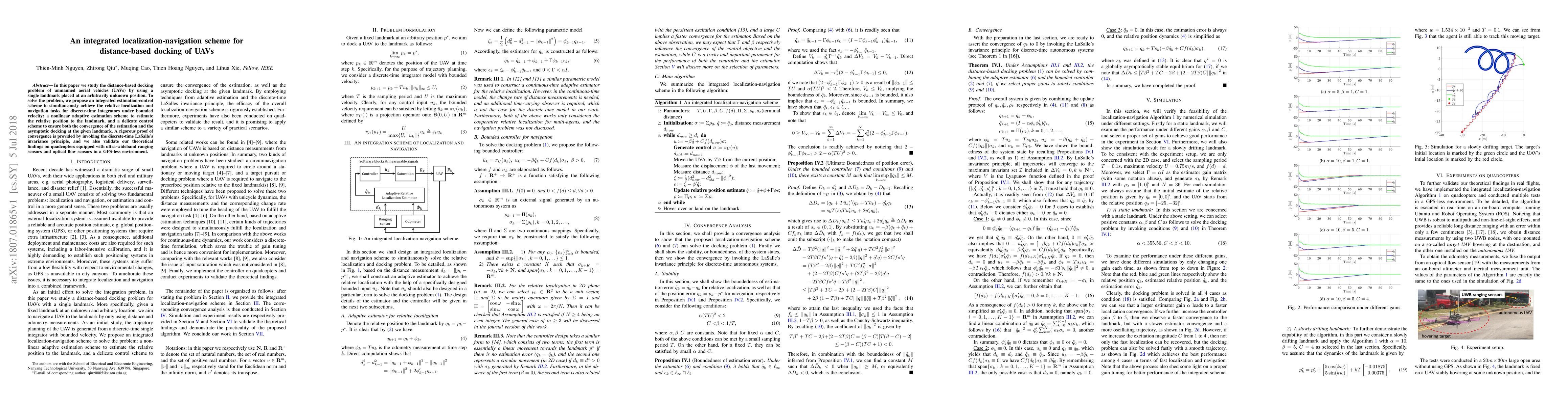 This paper proposes an integrated scheme for UAVs to dock at a landmark using adaptive estimation and delicate control, achieving convergence in GPS-less environments with validation on real-world quadcopters.