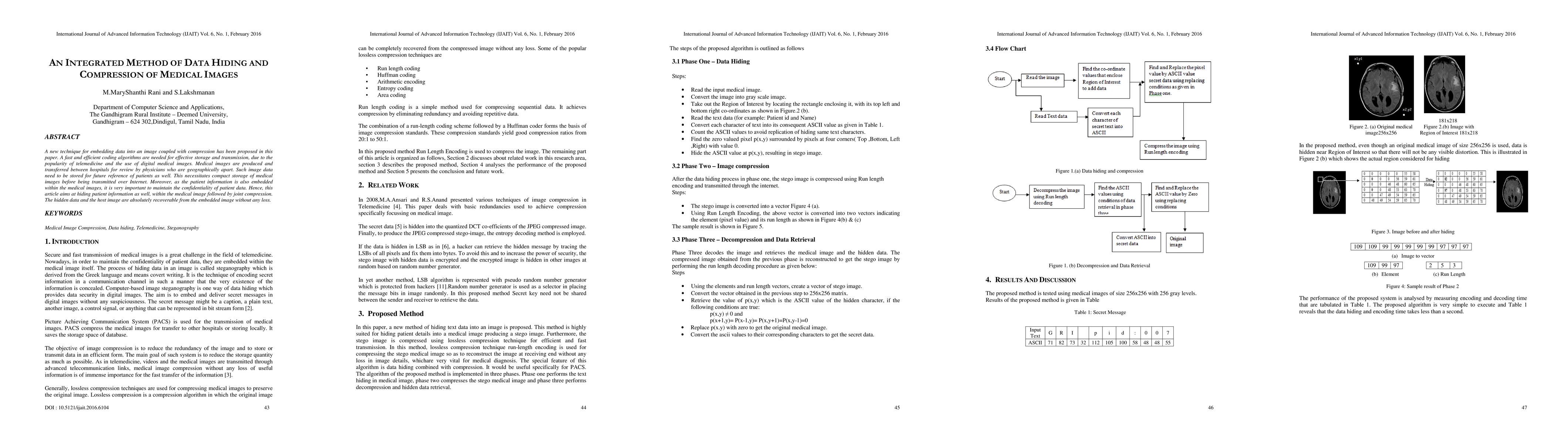 A new technique for embedding data into an image coupled with compression has been proposed in this paper. A fast and efficient coding algorithms are needed for effective storage and transmission, due to the popularity of telemedicine and the use of digital medical images. Medical images are produced and transferred between hospitals for review by physicians who are geographically apart. Such image data need to be stored for future reference of patients as well. This necessitates compact storage of medical images before being transmitted over Internet. Moreover, as the patient information is also embedded within the medical images, it is very important to maintain the confidentiality of patient data. Hence, this article aims at hiding patient information as well, within the medical image followed by joint compression. The hidden data and the host image are absolutely recoverable from the embedded image without any loss.