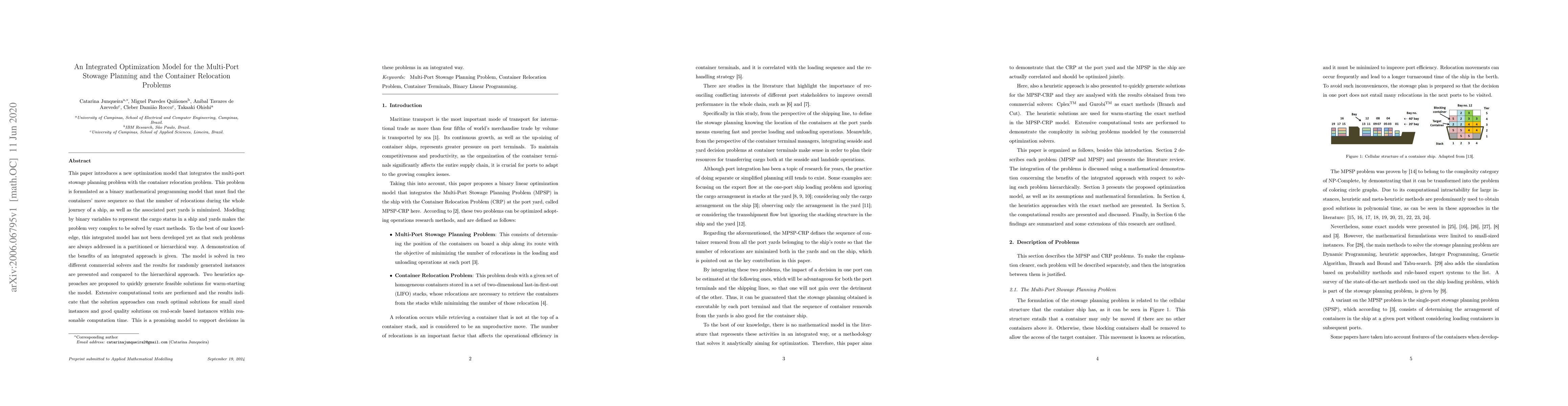 This paper introduces an integrated optimization model to minimize container relocations during a ship's journey, offering a promising approach for multi-port stowage planning and container relocation problems.