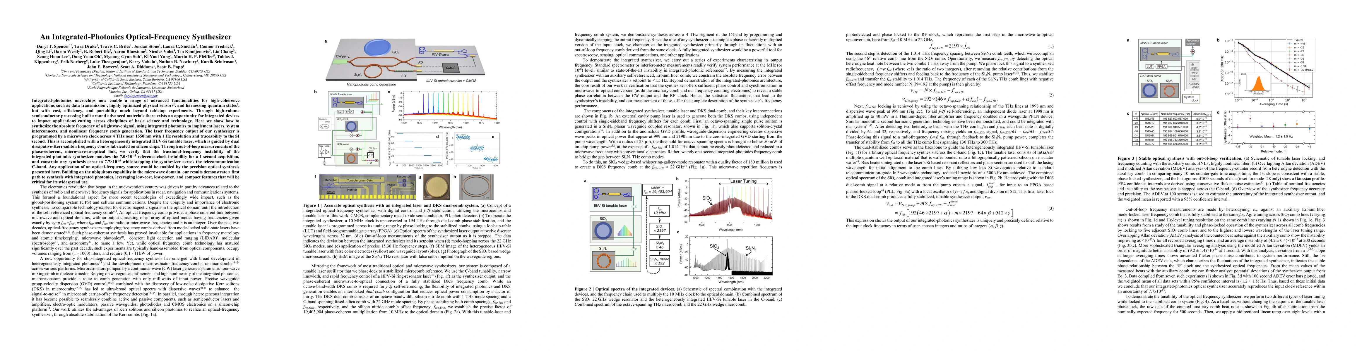 This research paper presents an advanced integrated-photonics optical-frequency synthesizer that synthesizes the absolute frequency of lightwave signals with high precision, utilizing advanced semiconductor processing and materials. The synthesizer, comprising a heterogeneously integrated III/V-Si tunable laser, demonstrates a frequency instability comparable to reference clocks, paving the way for its use in various high-coherence applications.
