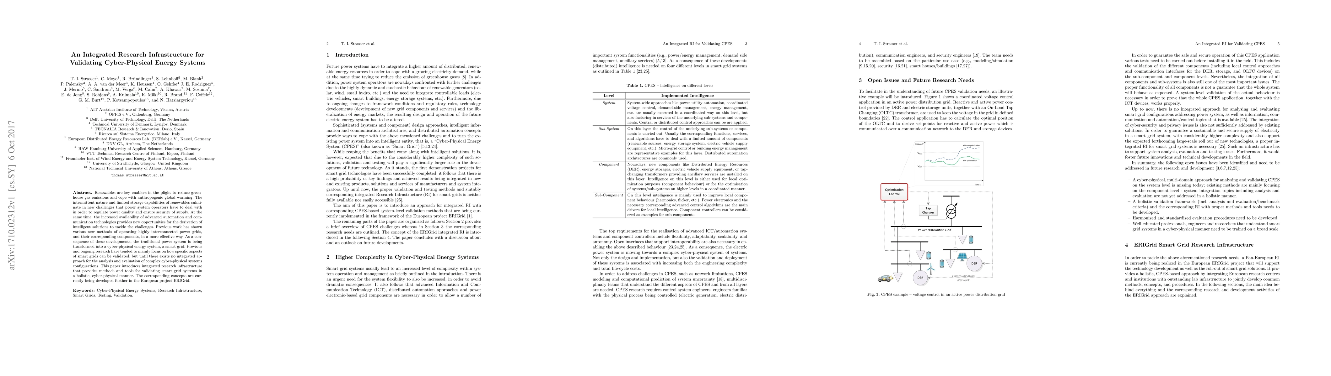 This paper introduces an integrated research infrastructure for validating cyber-physical energy systems, aiming to address the challenges of renewable energy integration and power quality regulation. The proposed infrastructure offers methods and tools for a holistic analysis of smart grid systems, currently being developed in the European project ERIGrid.