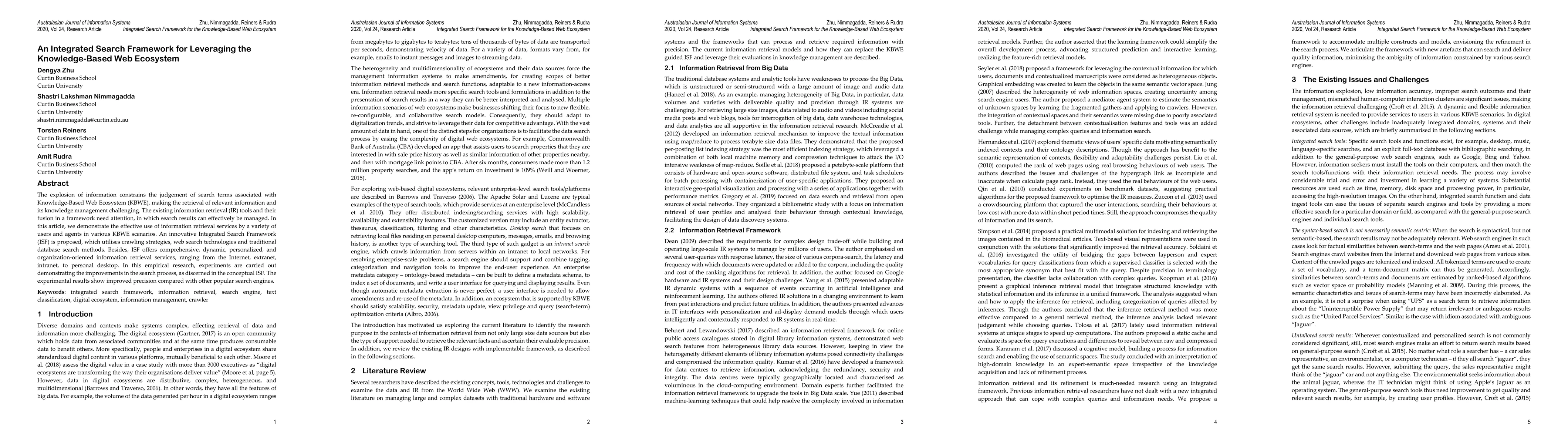 Researchers propose an Integrated Search Framework to improve information retrieval in Knowledge-Based Web Ecosystems, achieving better precision compared to popular search engines.