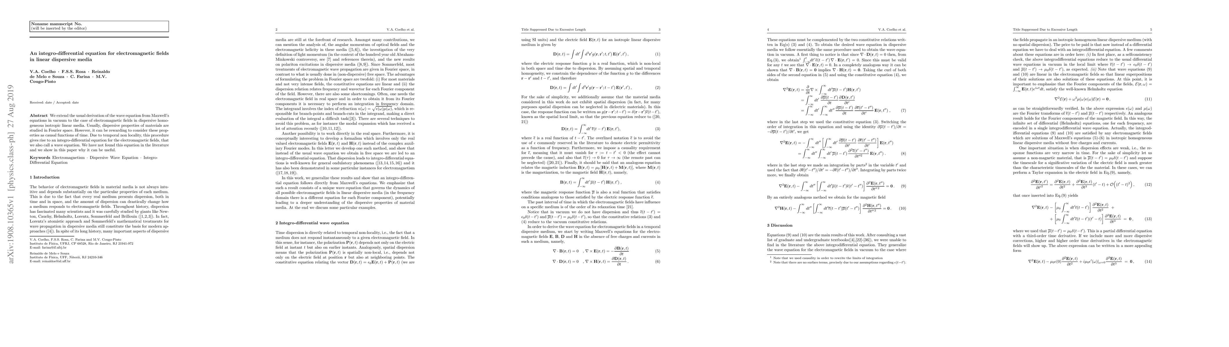 This paper derives an integrodifferential wave equation for electromagnetic fields in linear dispersive media, considering temporal non-locality as causal functions of time, a novel approach not previously documented in the literature. The authors argue for the potential utility of this new equation in understanding material dispersion.