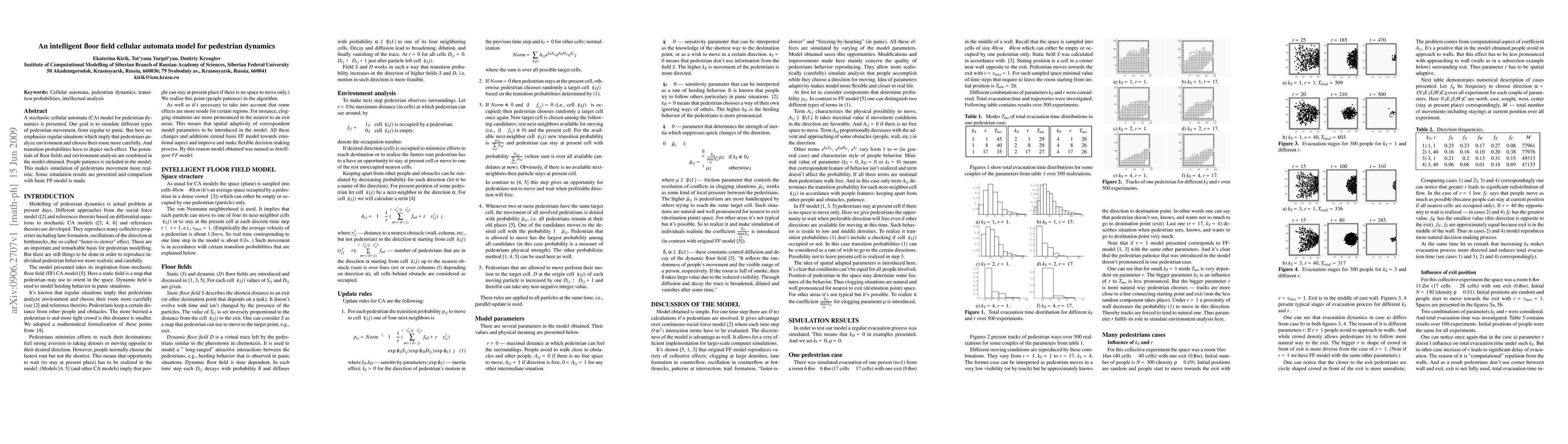 A stochastic cellular automata (CA) model for pedestrian dynamics is presented. Our goal is to simulate different types of pedestrian movement, from regular to panic. But here we emphasize regular situations which imply that pedestrians analyze environment and choose their route more carefully. And transition probabilities have to depict such effect. The potentials of floor fields and environment analysis are combined in the model obtained. People patience is included in the model. This makes simulation of pedestrians movement more realistic. Some simulation results are presented and comparison with basic FF-model is made.