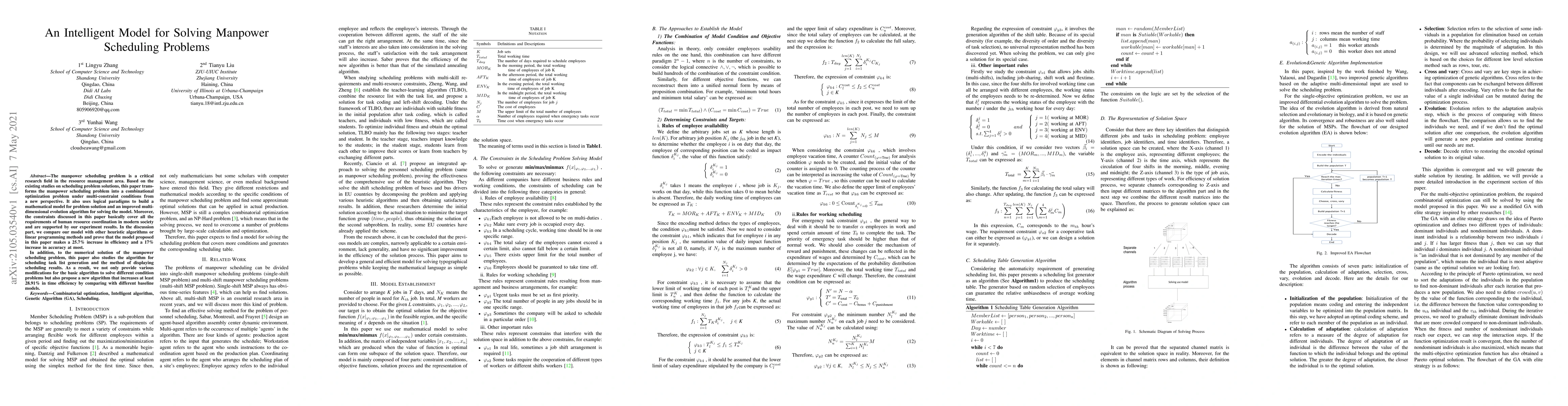 This paper proposes an intelligent model for solving manpower scheduling problems, transforming it into a combinatorial optimization issue under multi-constraint conditions. It employs an improved multi-dimensional evolution algorithm, demonstrating a 25.7% efficiency and 17% accuracy improvement over other methods, and introduces a new algorithm for task list scheduling with a 28.91% increase in time efficiency.