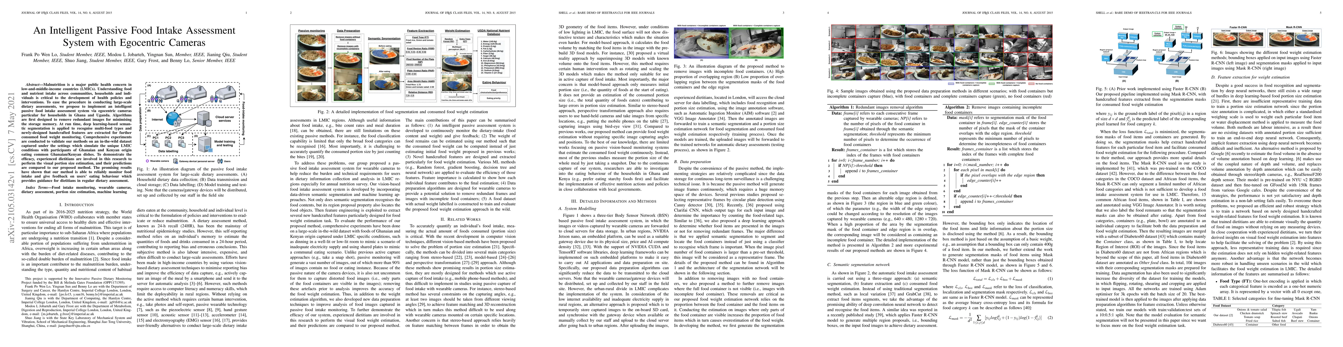 This paper proposes an intelligent passive food intake assessment system using egocentric cameras to monitor dietary habits in low-and-middle-income countries. The system employs deep learning for semantic segmentation and handcrafted features to recognize food types and monitor consumed food weight, validated through experiments involving Ghanaian and Kenyan participants.