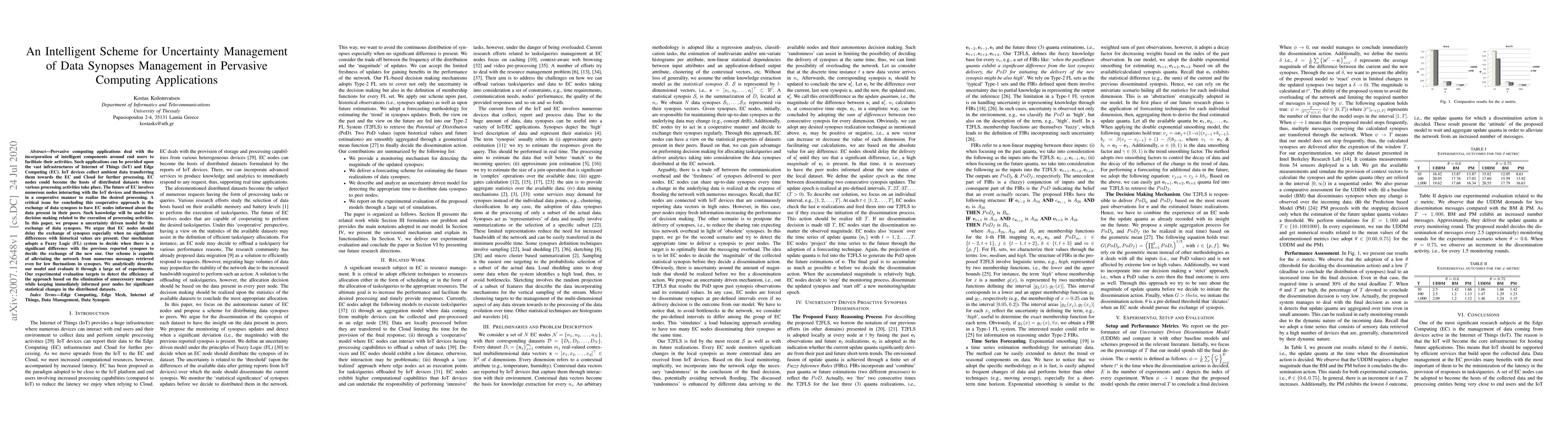 Pervasive computing applications deal with the incorporation of intelligent components around end users to facilitate their activities. Such applications can be provided upon the vast infrastructures of Internet of Things (IoT) and Edge Computing (EC). IoT devices collect ambient data transferring them towards the EC and Cloud for further processing. EC nodes could become the hosts of distributed datasets where various processing activities take place. The future of EC involves numerous nodes interacting with the IoT devices and themselves in a cooperative manner to realize the desired processing. A critical issue for concluding this cooperative approach is the exchange of data synopses to have EC nodes informed about the data present in their peers. Such knowledge will be useful for decision making related to the execution of processing activities. In this paper, we propose n uncertainty driven model for the exchange of data synopses. We argue that EC nodes should delay the exchange of synopses especially when no significant differences with historical values are present. Our mechanism adopts a Fuzzy Logic (FL) system to decide when there is a significant difference with the previous reported synopses to decide the exchange of the new one. Our scheme is capable of alleviating the network from numerous messages retrieved even for low fluctuations in synopses. We analytically describe our model and evaluate it through a large set of experiments. Our experimental evaluation targets to detect the efficiency of the approach based on the elimination of unnecessary messages while keeping immediately informed peer nodes for significant statistical changes in the distributed datasets.