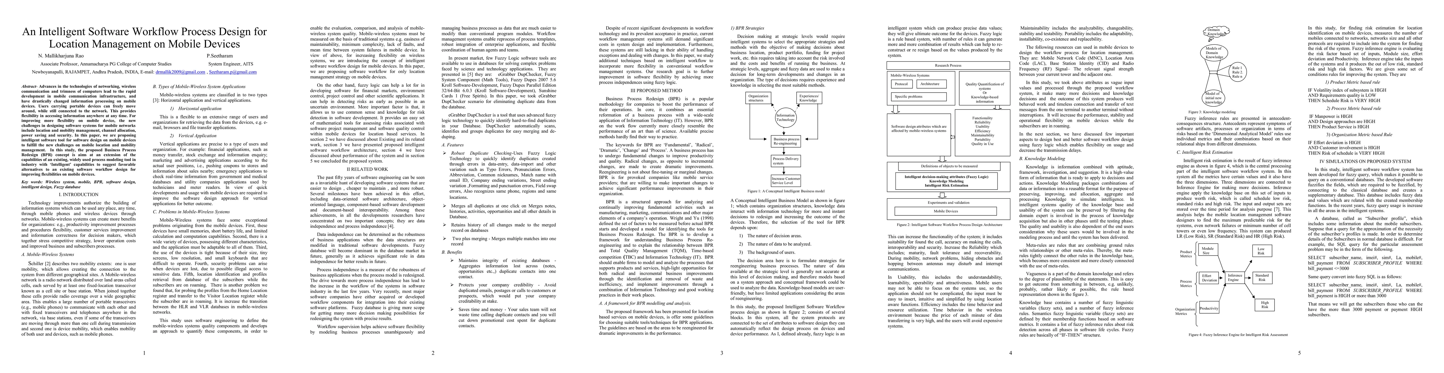This paper proposes an intelligent software tool for designing mobile device software workflows, enhancing location and mobility management. The study extends a widely used process modeling tool with 'Intelligent' capabilities to suggest improved alternatives for software design, addressing challenges like channel allocation, power saving, and security.