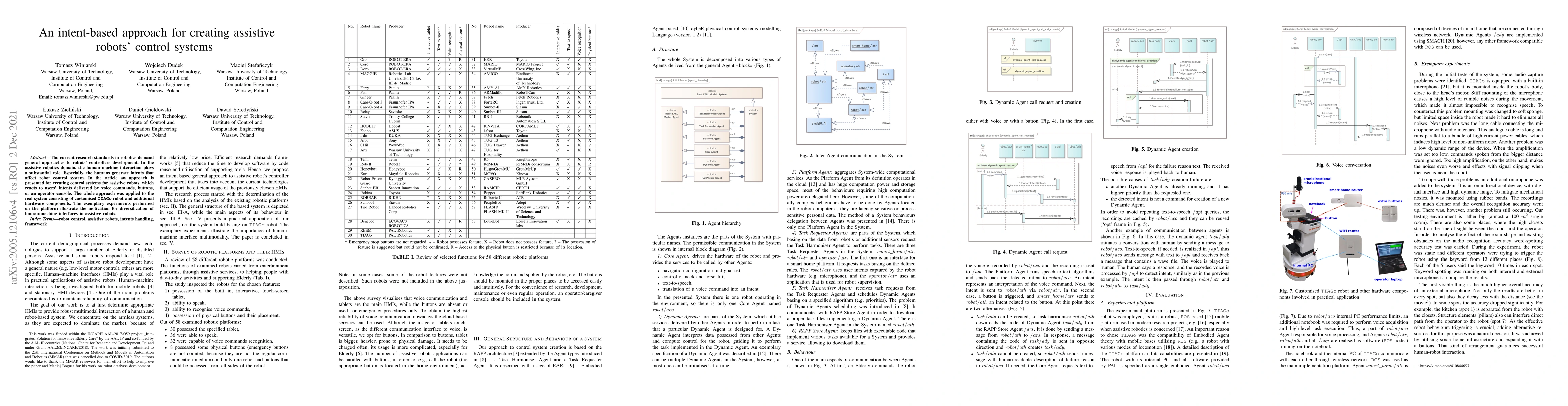 The current research standards in robotics demand general approaches to robots' controllers development. In the assistive robotics domain, the human-machine interaction plays a substantial role. Especially, the humans generate intents that affect robot control system. In the article an approach is presented for creating control systems for assistive robots, which reacts to users' intents delivered by voice commands, buttons, or an operator console. The whole approach was applied to the real system consisting of customised TIAGo robot and additional hardware components. The exemplary experiments performed on the platform illustrate the motivation for diversification of human-machine interfaces in assistive robots.