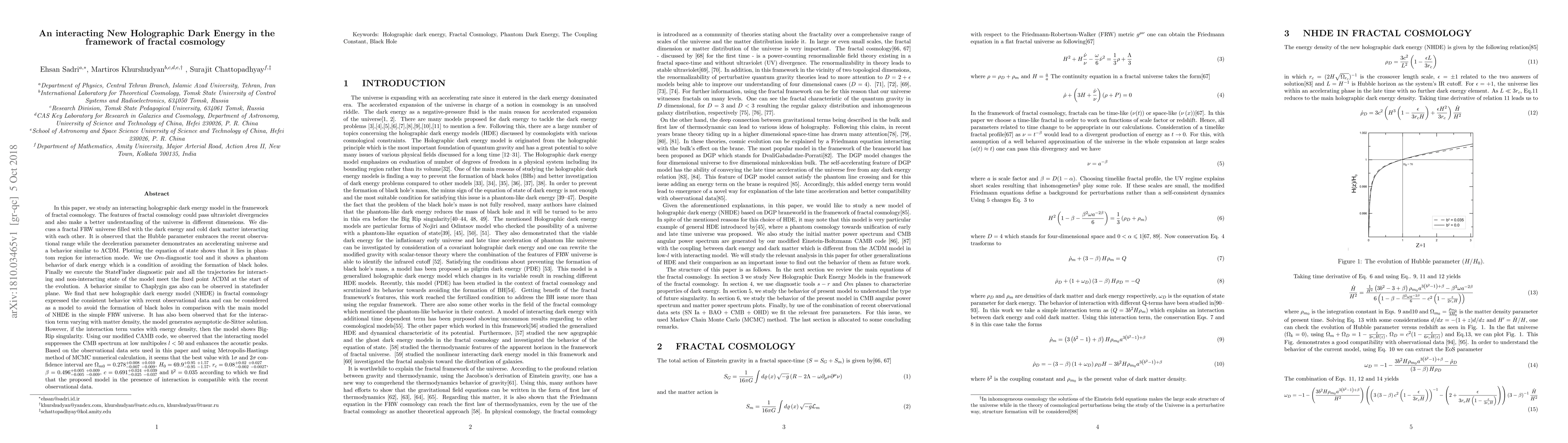 A new interacting holographic dark energy model in fractal cosmology shows a consistent behavior with recent observational data, avoiding black hole formation and exhibiting features similar to the $ ext{λ}CDM$ model.