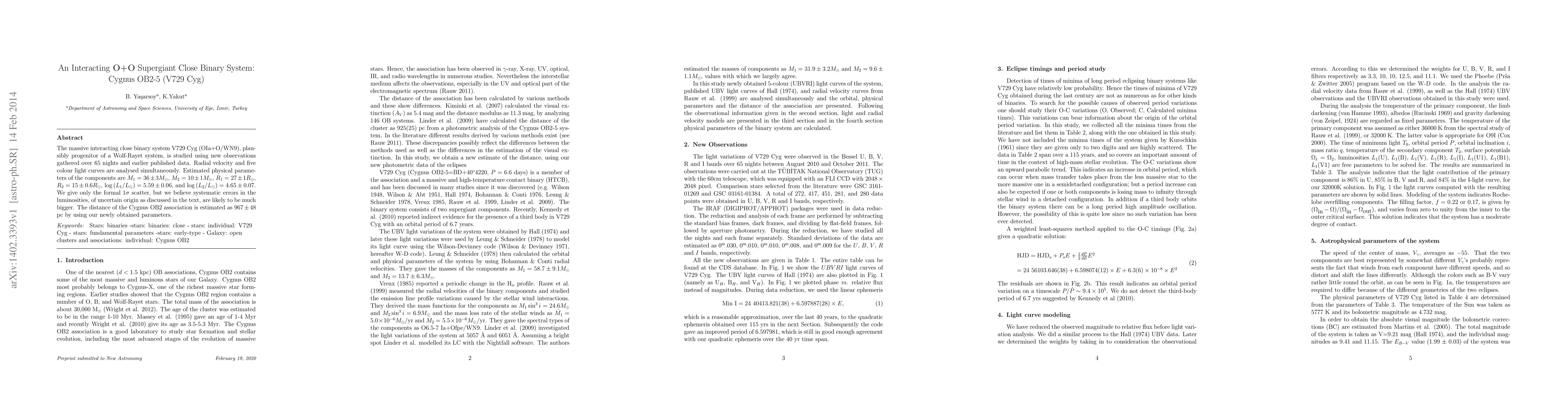Researchers studied the Cygnus OB2-5 binary system, a massive interacting close binary with estimated masses and luminosities, to better understand its evolution and potential impact on Wolf-Rayet systems.