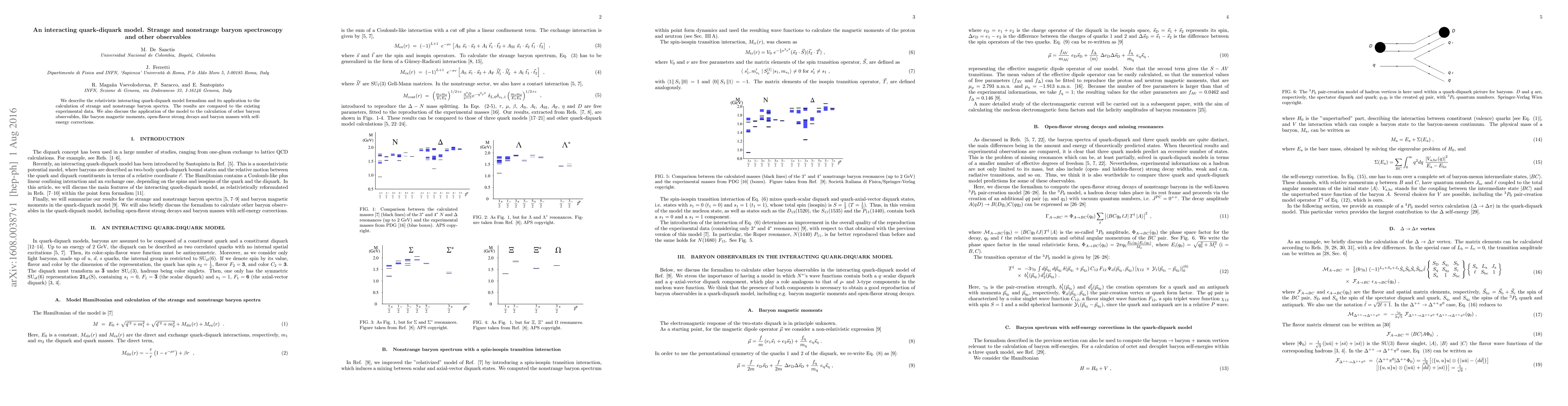 This paper presents a relativistic interacting quark-diquark model to calculate the spectra of strange and nonstrange baryons, comparing results to experimental data and discussing additional observables like magnetic moments, decay processes, and baryon masses with self-energy corrections.