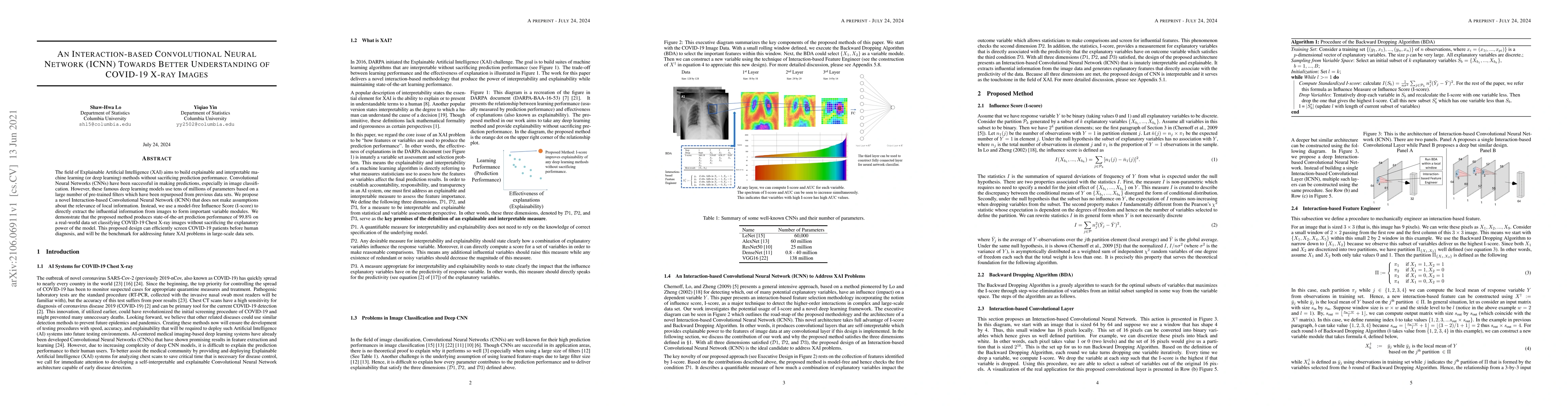The field of Explainable Artificial Intelligence (XAI) aims to build explainable and interpretable machine learning (or deep learning) methods without sacrificing prediction performance. Convolutional Neural Networks (CNNs) have been successful in making predictions, especially in image classification. However, these famous deep learning models use tens of millions of parameters based on a large number of pre-trained filters which have been repurposed from previous data sets. We propose a novel Interaction-based Convolutional Neural Network (ICNN) that does not make assumptions about the relevance of local information. Instead, we use a model-free Influence Score (I-score) to directly extract the influential information from images to form important variable modules. We demonstrate that the proposed method produces state-of-the-art prediction performance of 99.8% on a real-world data set classifying COVID-19 Chest X-ray images without sacrificing the explanatory power of the model. This proposed design can efficiently screen COVID-19 patients before human diagnosis, and will be the benchmark for addressing future XAI problems in large-scale data sets.