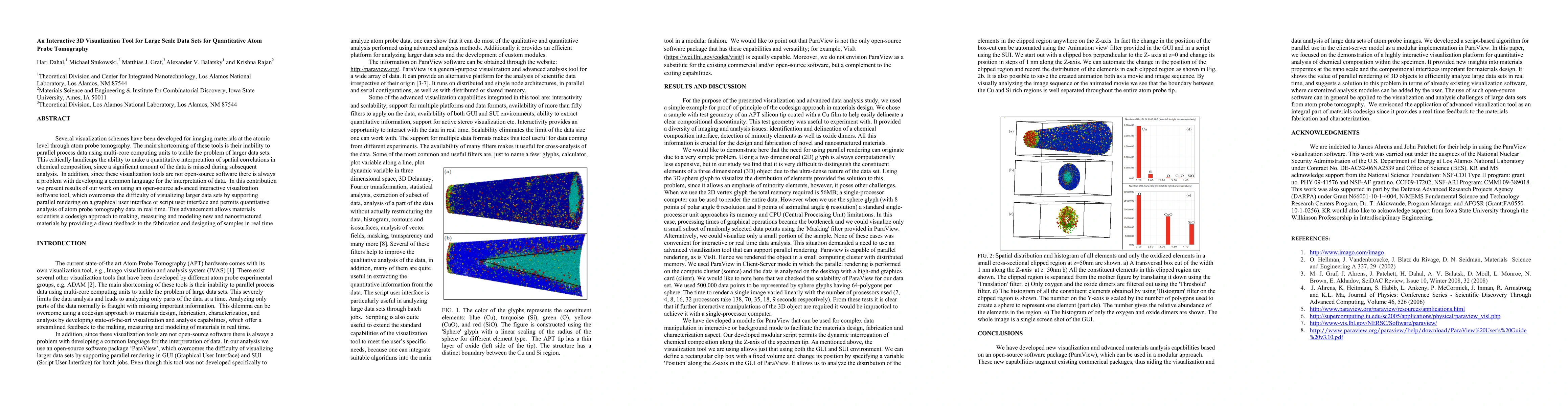 Several visualization schemes have been developed for imaging materials at the atomic level through atom probe tomography. The main shortcoming of these tools is their inability to parallel process data using multi-core computing units to tackle the problem of larger data sets. This critically handicaps the ability to make a quantitative interpretation of spatial correlations in chemical composition, since a significant amount of the data is missed during subsequent analysis. In addition, since these visualization tools are not open-source software there is always a problem with developing a common language for the interpretation of data. In this contribution we present results of our work on using an open-source advanced interactive visualization software tool, which overcomes the difficulty of visualizing larger data sets by supporting parallel rendering on a graphical user interface or script user interface and permits quantitative analysis of atom probe tomography data in real time. This advancement allows materials scientists a codesign approach to making, measuring and modeling new and nanostructured materials by providing a direct feedback to the fabrication and designing of samples in real time.