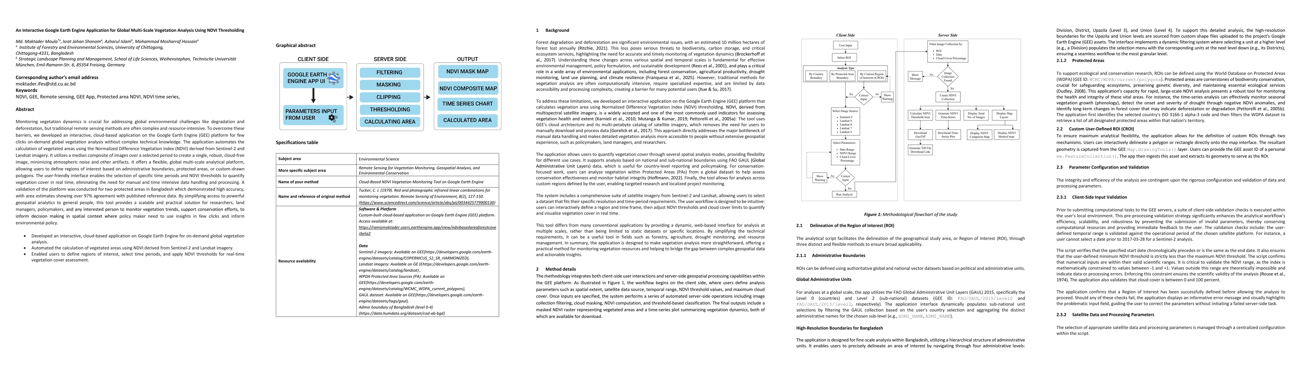 Monitoring vegetation dynamics is crucial for addressing global environmental challenges like degradation and deforestation, but traditional remote sensing methods are often complex and resource-intensive. To overcome these barriers, we developed an interactive, cloud-based application on the Google Earth Engine (GEE) platform for few clicks on-demand global vegetation analysis without complex technical knowledge. The application automates the calculation of vegetated areas using the Normalized Difference Vegetation Index (NDVI) derived from Sentinel-2 and Landsat imagery. It utilizes a median composite of images over a selected period to create a single, robust, cloud-free image, minimizing atmospheric noise and other artifacts. It offers a flexible, global multi-scale analytical platform, allowing users to define regions of interest based on administrative boundaries, protected areas, or custom-drawn polygons. The user-friendly interface enables the selection of specific time periods and NDVI thresholds to quantify vegetation cover in real time, eliminating the need for manual and time intensive data handling and processing. A validation of the platform was conducted for two protected areas in Bangladesh which demonstrated high accuracy, with area estimates showing over 97% agreement with published reference data. By simplifying access to powerful geospatial analytics to general people, this tool provides a scalable and practical solution for researchers, land managers, policymakers, and any interested person to monitor vegetation trends, support conservation efforts, to inform decision making in spatial context where policy maker need to use insights in few clicks and inform environmental policy.