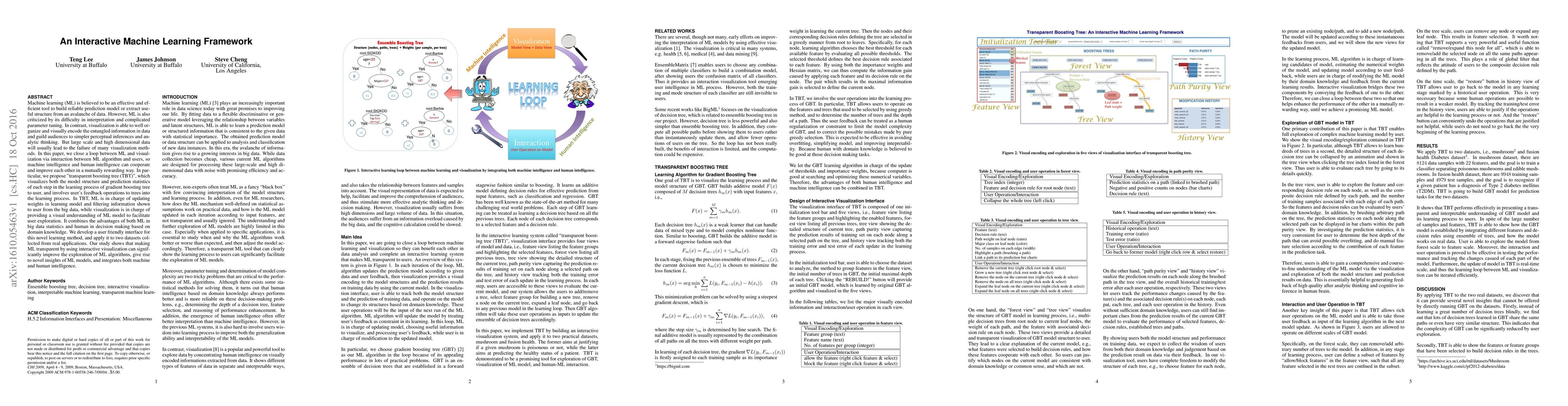 This paper proposes an interactive machine learning framework called Transparent Boosting Tree (TBT), which combines the strengths of machine intelligence and human intuition to improve the exploration and understanding of complex models.
