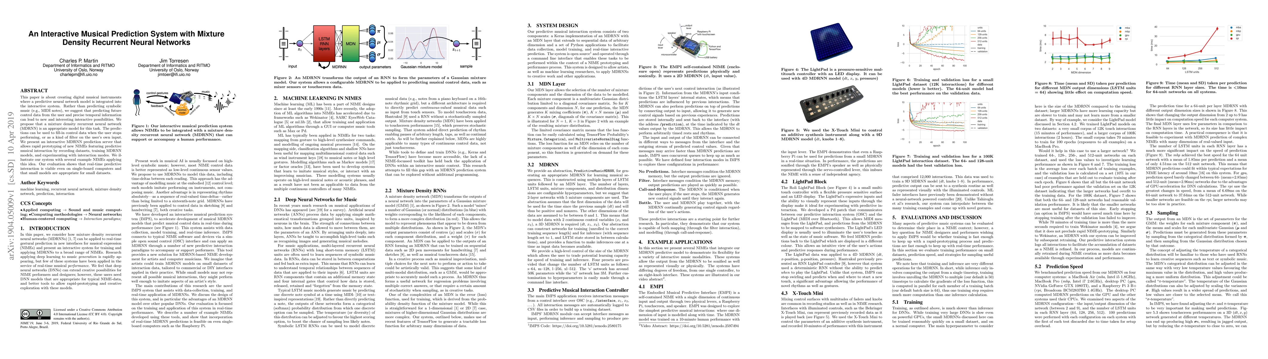 This paper proposes an interactive musical prediction system using mixture density recurrent neural networks (MDRNN) to predict future control data and temporal information, enabling novel interactive musical experiences. The system demonstrates real-time predictive capabilities on small devices, showcasing its potential for rapid prototyping of new digital musical instruments.