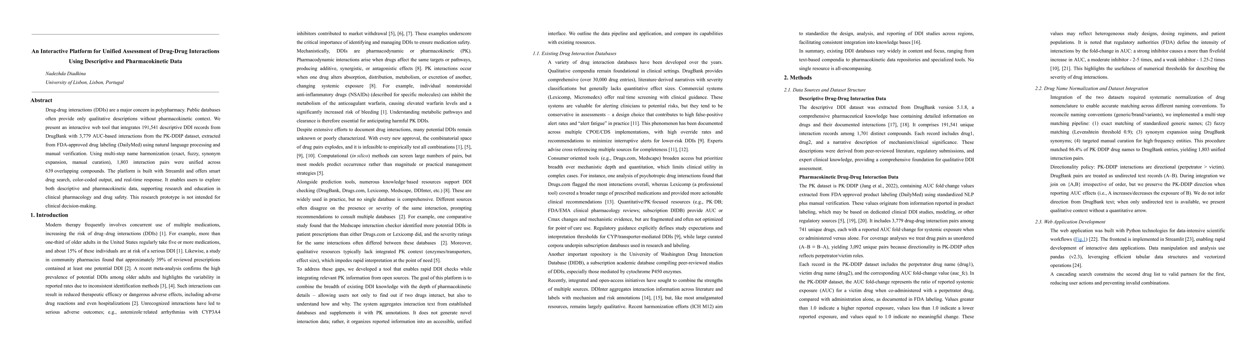 Drug-drug interactions (DDIs) are a major concern in polypharmacy. Public databases often provide only qualitative descriptions without pharmacokinetic context. We present an interactive web tool that integrates 191,541 descriptive DDI records from DrugBank with 3,779 AUC-based interactions from the PK-DDIP dataset, extracted from FDA-approved drug labeling (DailyMed) using natural language processing and manual verification. Using multi-step name harmonization (exact, fuzzy, synonym expansion, manual curation), 1,803 interaction pairs were unified across 639 overlapping compounds. The platform is built with Streamlit and offers smart drug search, color-coded output, and real-time response. It enables users to explore both descriptive and pharmacokinetic data, supporting research and education in clinical pharmacology and drug safety. This research prototype is not intended for clinical decision-making.