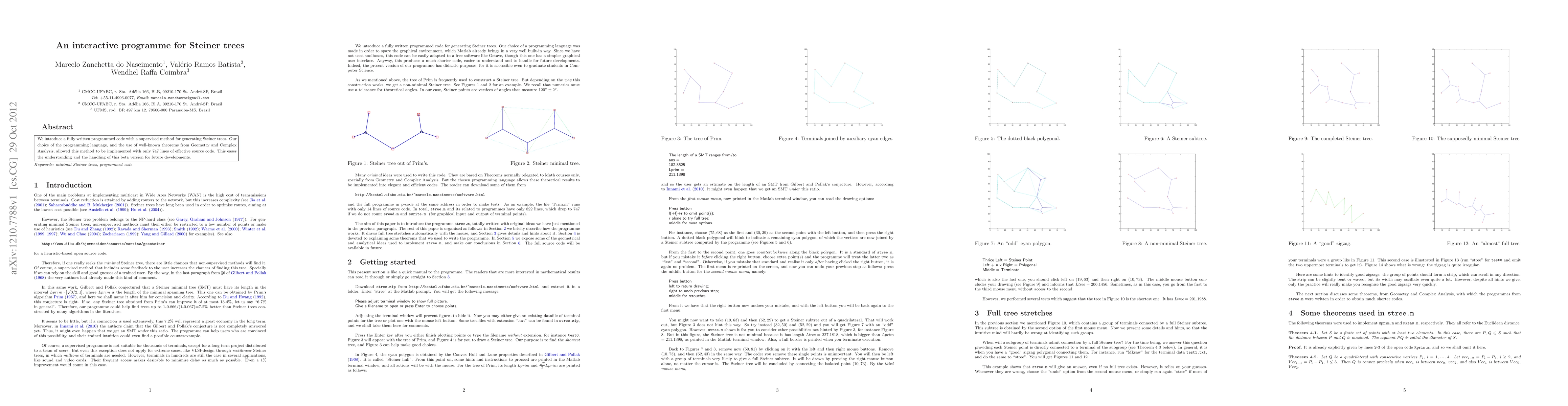 We introduce a fully written programmed code with a supervised method for generating Steiner trees. Our choice of the programming language, and the use of well-known theorems from Geometry and Complex Analysis, allowed this method to be implemented with only 747 lines of effective source code. This eases the understanding and the handling of this beta version for future developments.