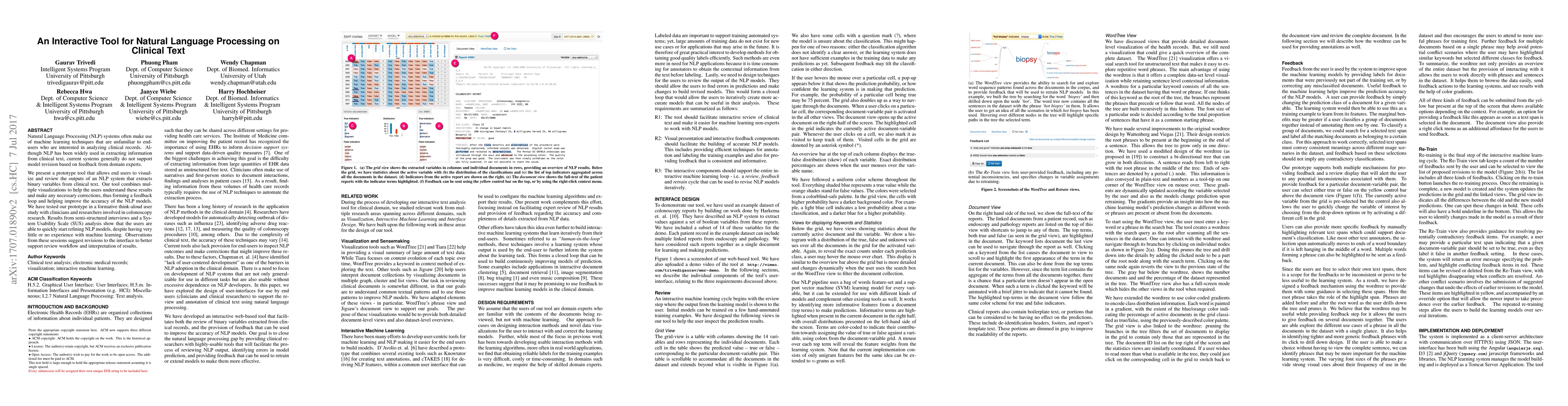 This paper introduces an interactive tool for visualizing and refining NLP outputs on clinical text, enabling non-expert users to correct and improve model accuracy through a feedback loop. Initial user testing indicates that clinicians can effectively refine NLP models with minimal machine learning experience.