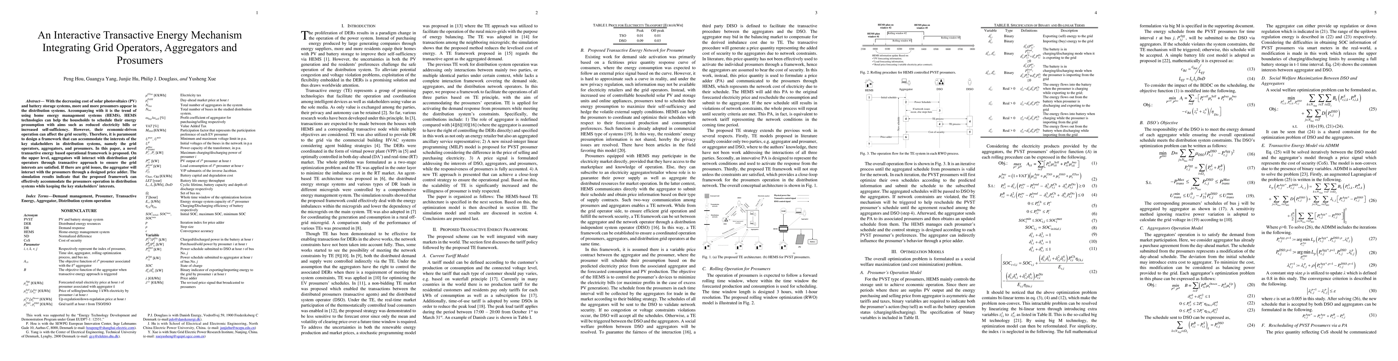 This paper proposes a transactive energy mechanism to integrate grid operators, aggregators, and prosumers in distribution systems. The framework ensures grid security while accommodating prosumers' energy management goals, demonstrating effective stakeholder interest alignment through simulations.