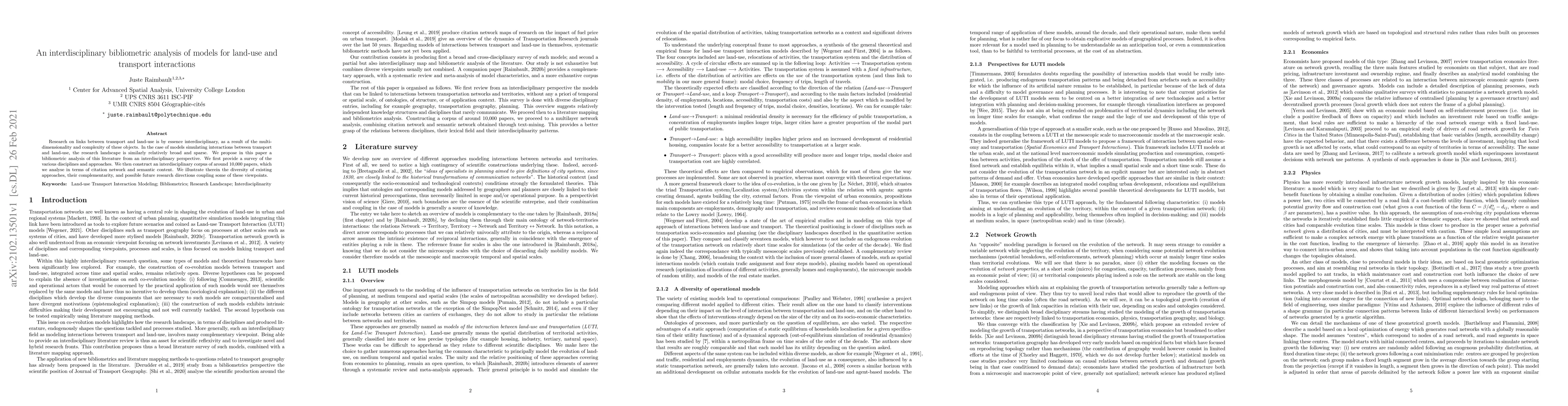 This paper conducts an interdisciplinary bibliometric analysis of models simulating interactions between transport and land-use, surveying various disciplines and approaches. The study analyzes a corpus of around 10,000 papers to reveal the diversity of existing models, their complementarity, and potential future research directions.