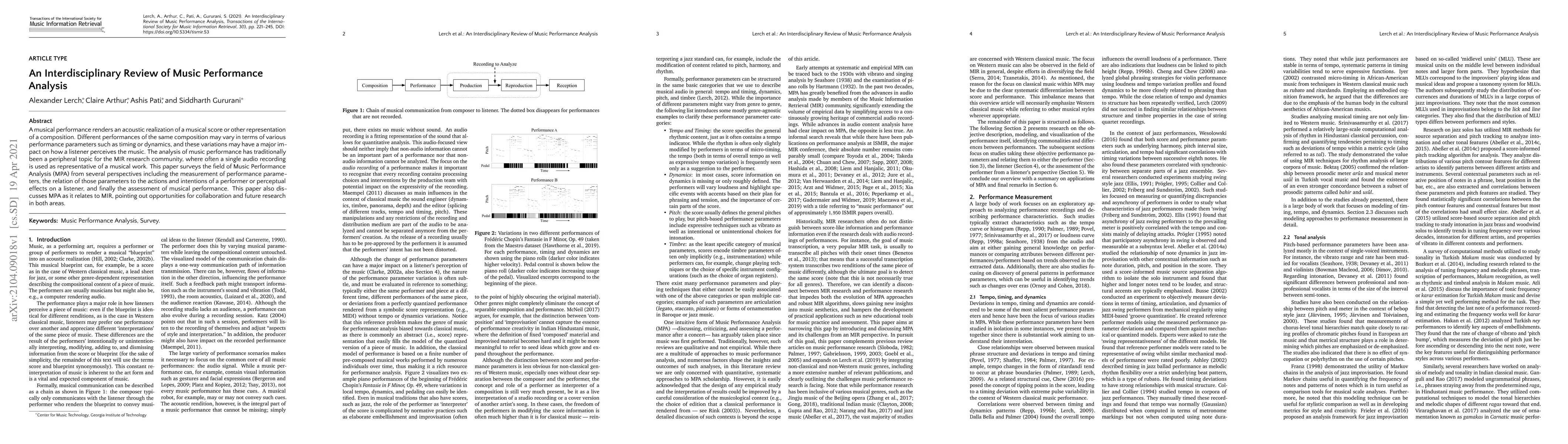 This paper reviews Music Performance Analysis (MPA), exploring how variations in performance parameters like timing and dynamics affect listener perception. It highlights opportunities for collaboration between MPA and Music Information Retrieval (MIR) research, emphasizing future interdisciplinary research directions.
