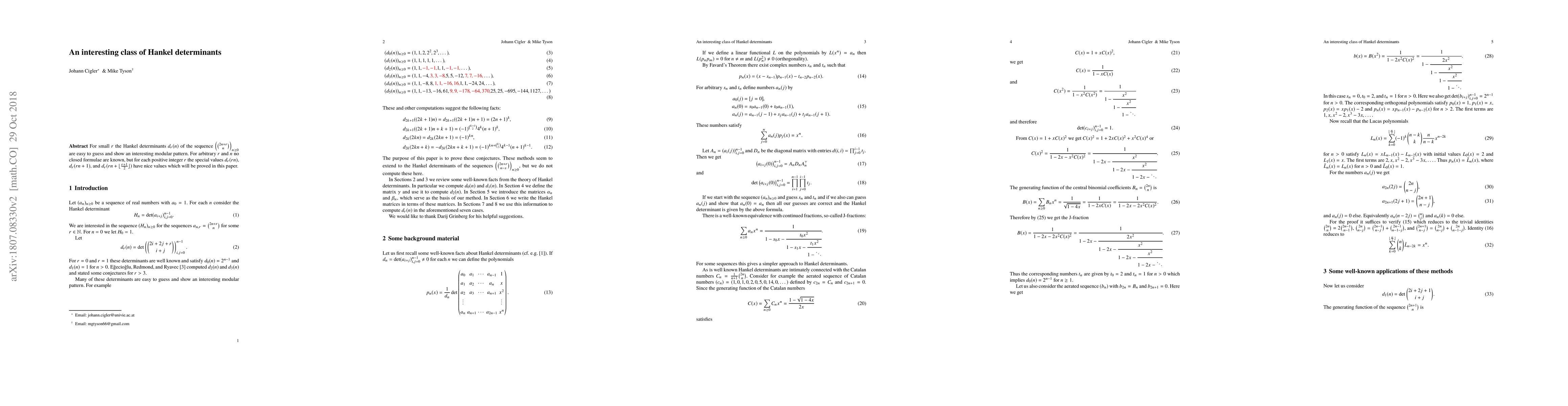 This paper investigates the modular pattern of Hankel determinants for a specific sequence and finds special values with nice properties, but does not provide closed formulae for arbitrary r and n.