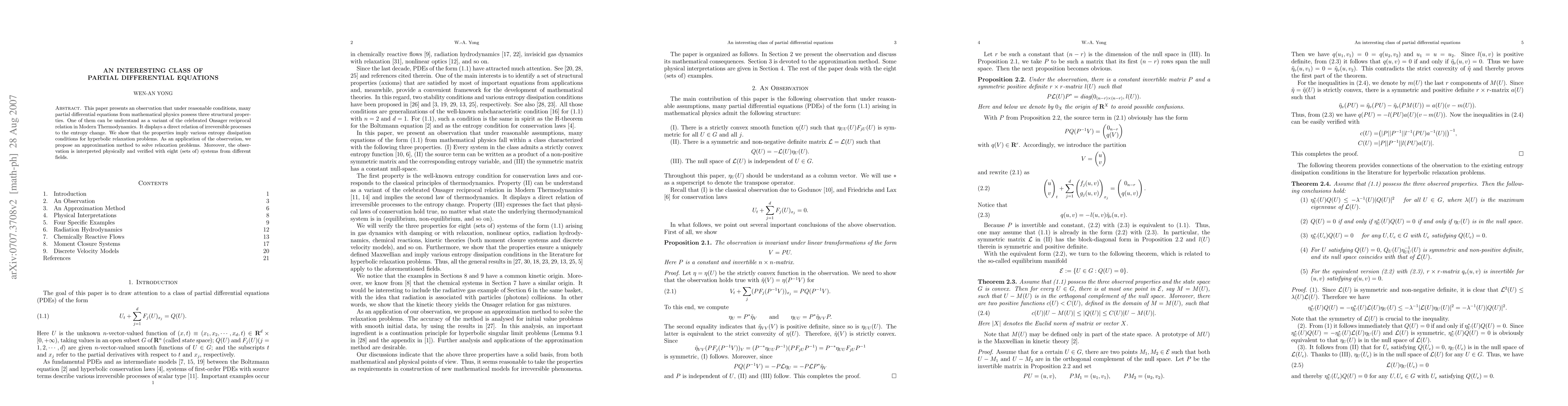 This paper presents an observation that under reasonable conditions, many partial differential equations from mathematical physics possess three structural properties. One of them can be understand as a variant of the celebrated Onsager reciprocal relation in Modern Thermodynamics. It displays a direct relation of irreversible processes to the entropy change. We show that the properties imply various entropy dissipation conditions for hyperbolic relaxation problems. As an application of the observation, we propose an approximation method to solve relaxation problems. Moreover, the observation is interpreted physically and verified with eight (sets of) systems from different fields.