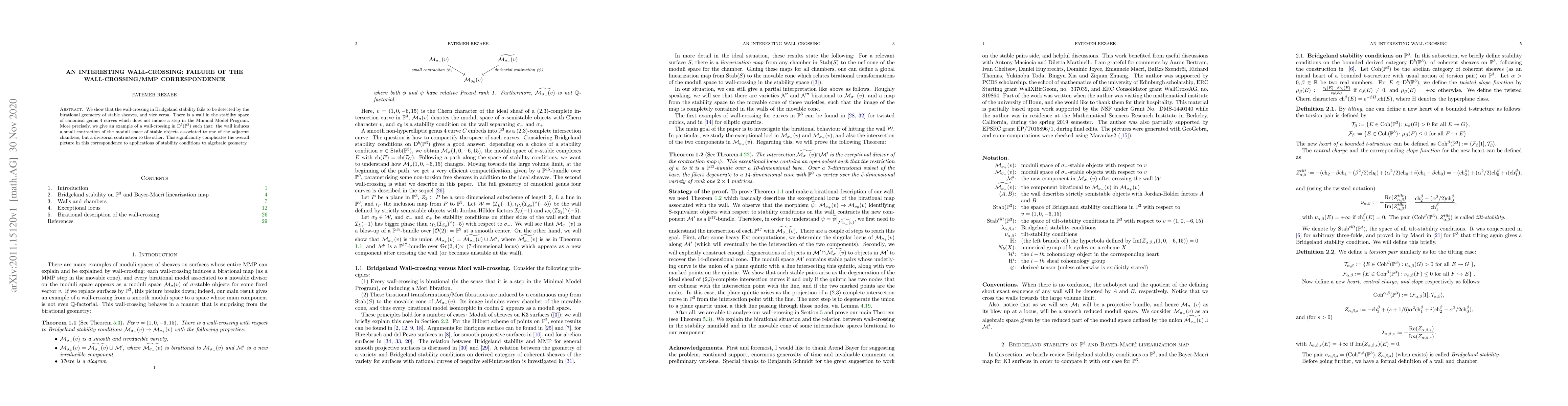 We show that the wall-crossing in Bridgeland stability fails to be detected by the birational geometry of stable sheaves, and vice versa. There is a wall in the stability space of canonical genus four curves which does not induce a step in the Minimal Model Program. More precisely, we give an example of a wall-crossing in $\mathrm{D}^{b}(\mathbb{P}^{3})$ such that: the wall induces a small contraction of the moduli space of stable objects associated to one of the adjacent chambers, but a divisorial contraction to the other. This significantly complicates the overall picture in this correspondence to applications of stability conditions to algebraic geometry.