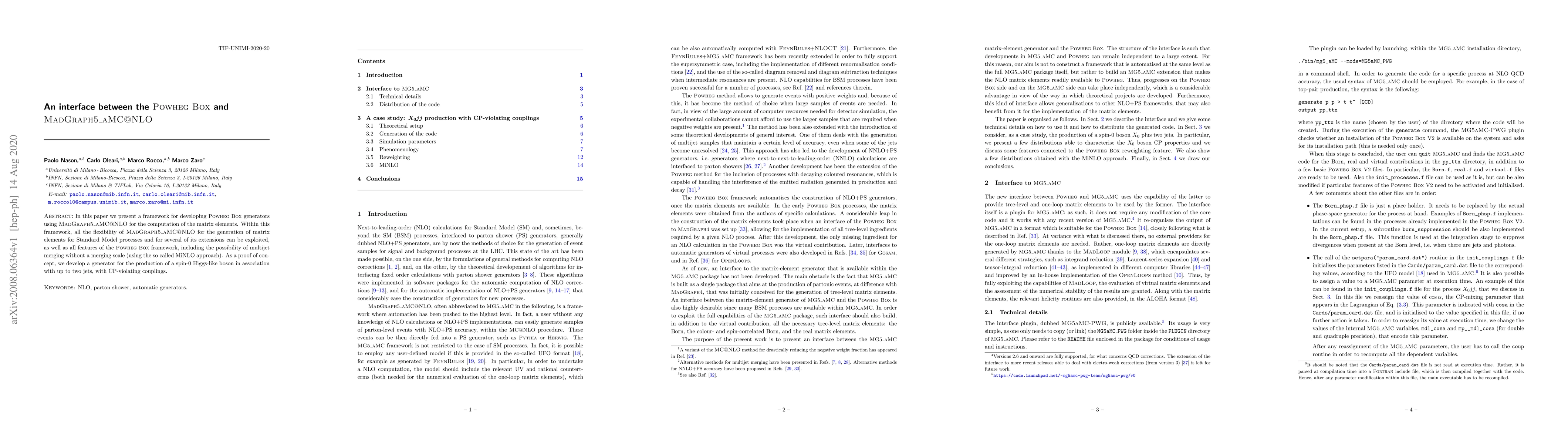 This paper introduces a framework to integrate POWHEG BOX generators with MadGraph5_aMC@NLO for matrix element computations, leveraging both tools' features, including multijet merging via MiNLO. A demonstration generator for spin-0 Higgs-like boson production with up to two jets and CP-violating couplings is developed.