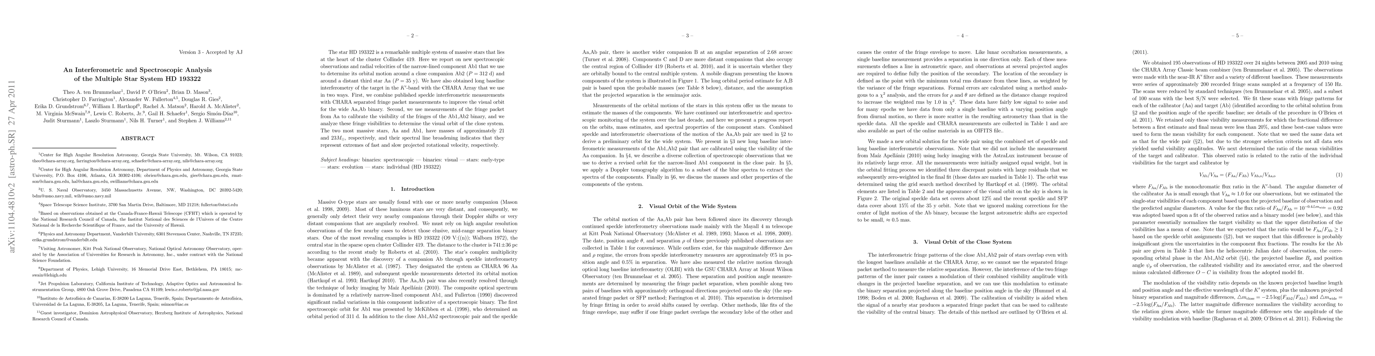 The star HD 193322 is a remarkable multiple system of massive stars that lies at the heart of the cluster Collinder 419. Here we report on new spectroscopic observations and radial velocities of the narrow-lined component Ab1 that we use to determine its orbital motion around a close companion Ab2 ($P = 312$ d) and around a distant third star Aa ($P = 35$ y).We have also obtained long baseline interferometry of the target in the $K^\prime$-band with the CHARA Array that we use in two ways. First, we combine published speckle interferometric measurements with CHARA separated fringe packet measurements to improve the visual orbit for the wide Aa,Ab binary. Second, we use measurements of the fringe packet from Aa to calibrate the visibility of the fringes of the Ab1,Ab2 binary, and we analyze these fringe visibilities to determine the visual orbit of the close system. The two most massive stars, Aa and Ab1, have masses of approximately 21 and $23 M_\odot$, respectively, and their spectral line broadening indicates that they represent extremes of fast and slow projected rotational velocity, respectively.
